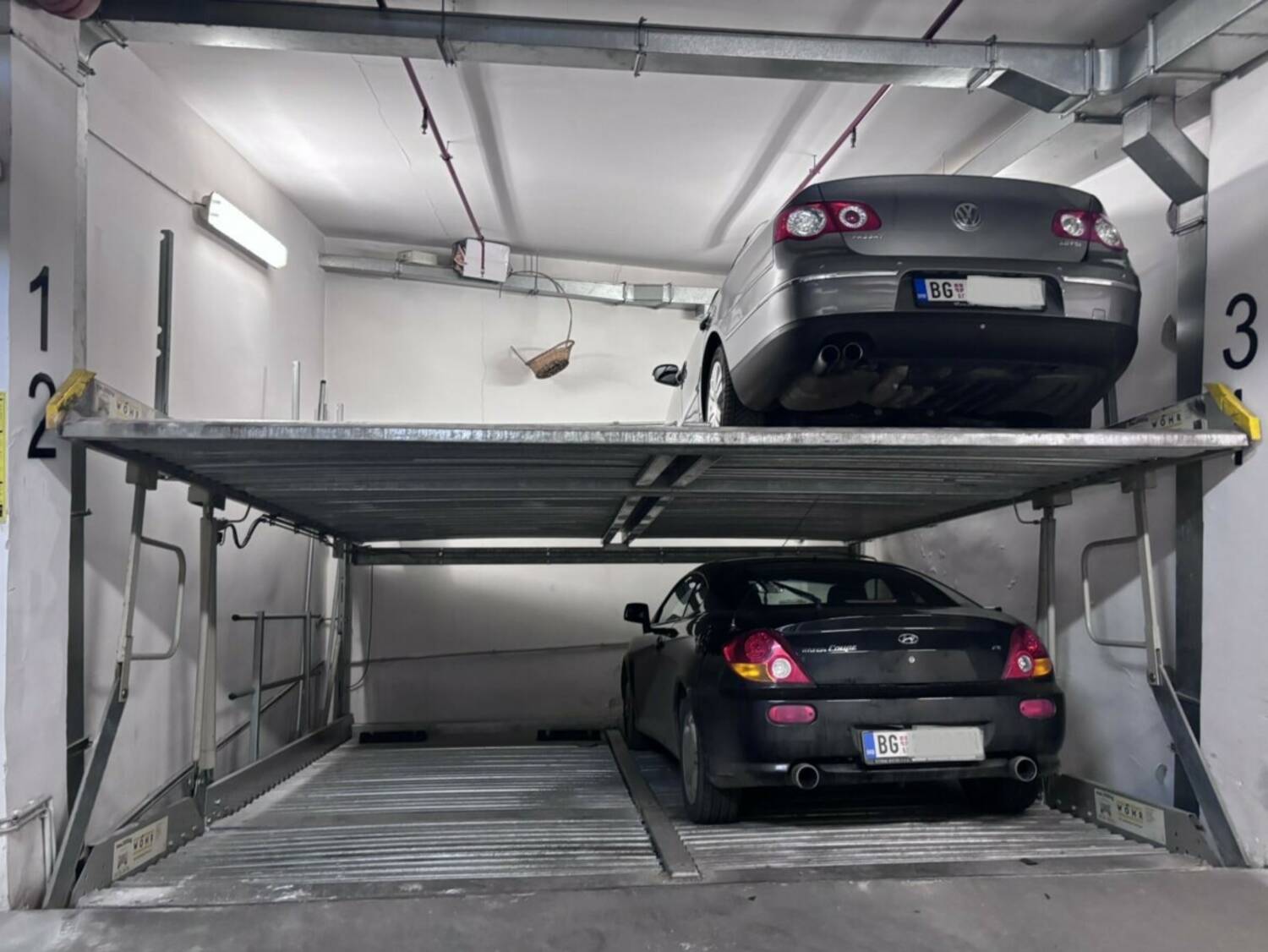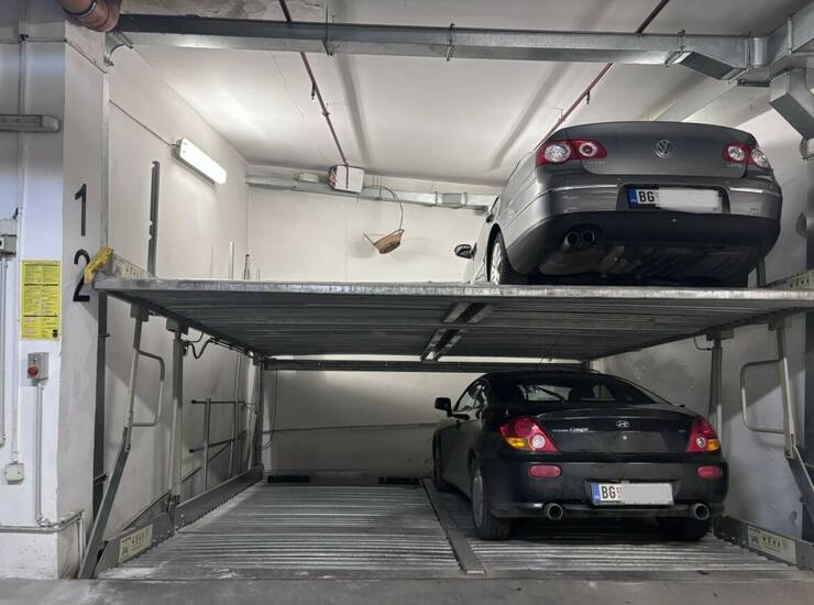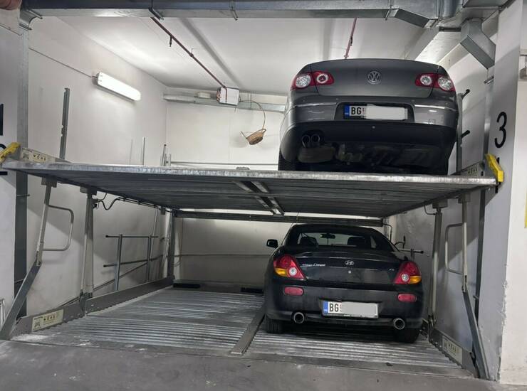 Zgrada ima predviđen nivo -1 sa ukupnim kapacitetom do 10 automobila. Sva garažna mesta su uknjižena, redovno se održavaju i servisiraju. Zgrada poseduje građevinsku i upotrebnu dozvolu. Garažno mesto je uknjiženo na 7 m².