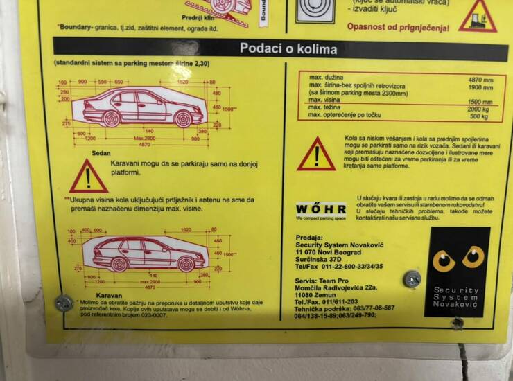 Dimenzije prema specifikaciji proizvođača WÖHR: