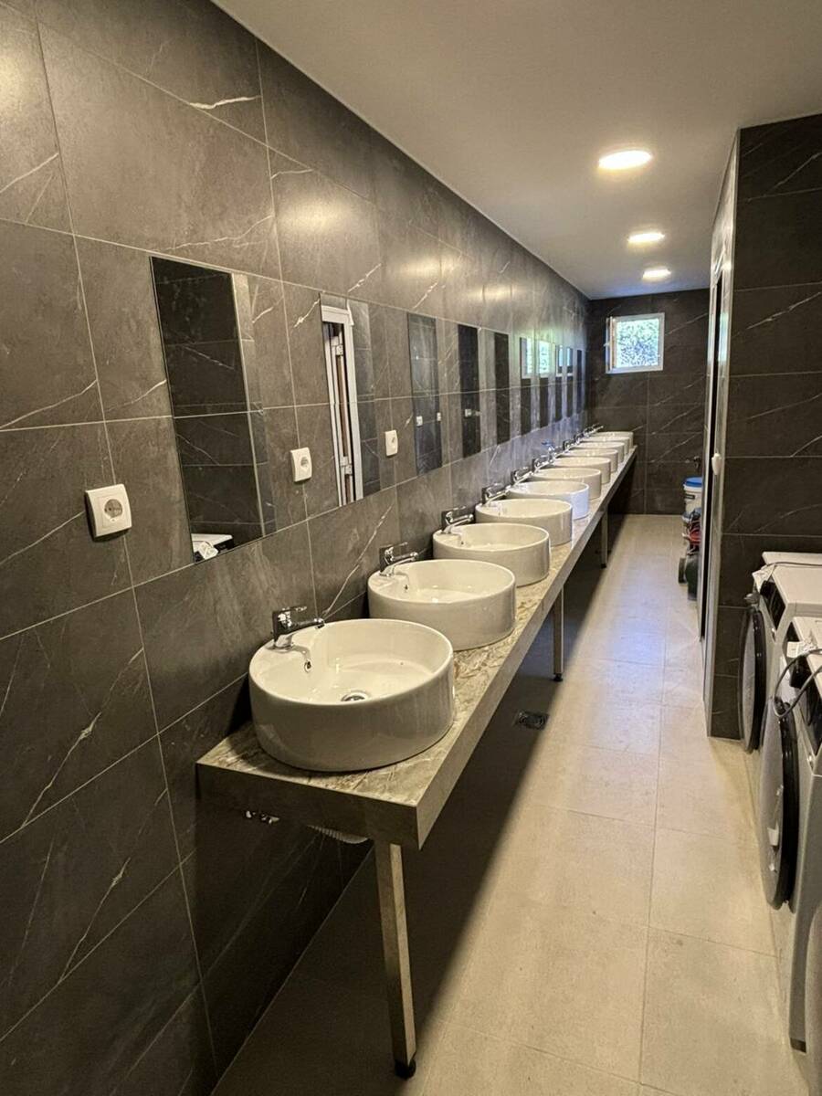 Kuptilo je sa 11 umivaonika, tuš kabina i wc-a, tu si i Masine za veš i sušenje.
