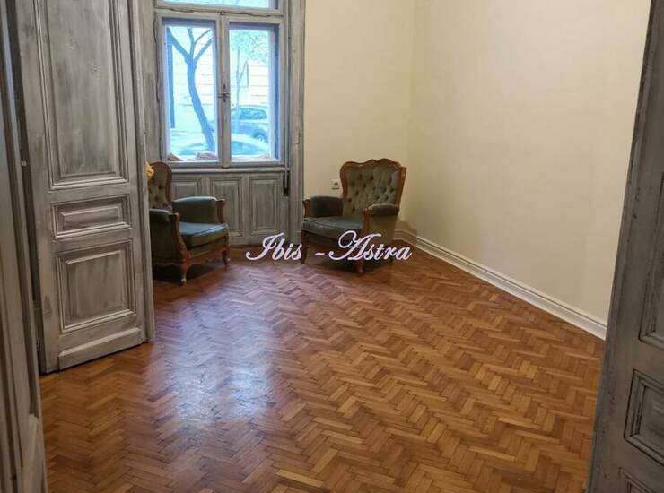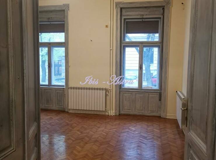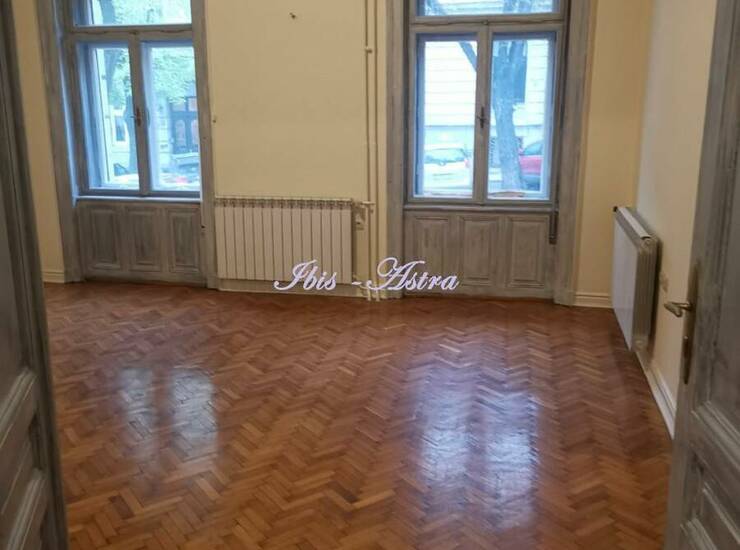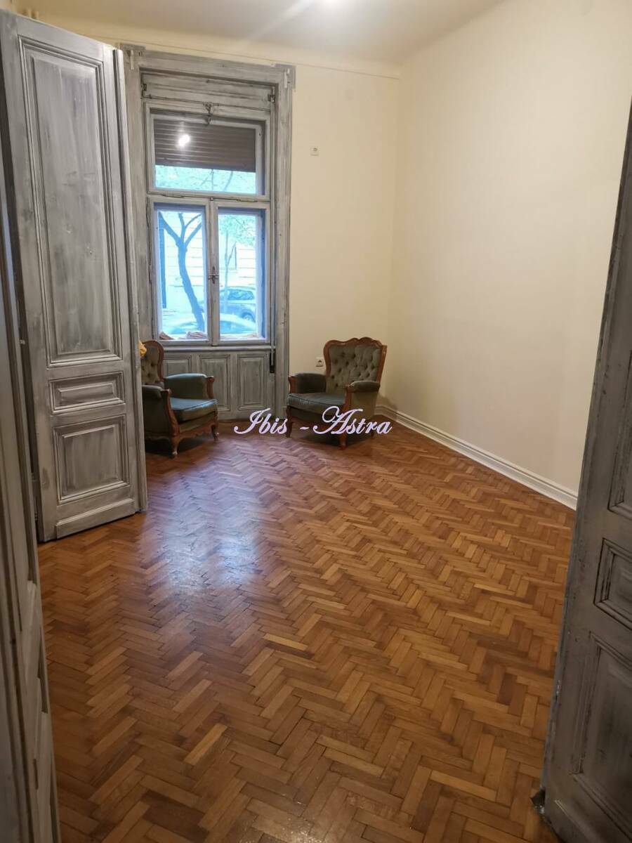 Na početku Francuska ulice, u predratnoj salonskoj zgradi za izdavanje prazan salonski stan površine 120m2. Stan se sastoji od prijemnog salona, 3 sobe, kuhinje sa devojačkom sobom, 2 mokra čvora. Ima pripadajući deo unutrašnjeg dvorišta. Stan je dvostrano orjentisan. Izdaje se na duži period za mirnu kancelarijsku delatnost.
