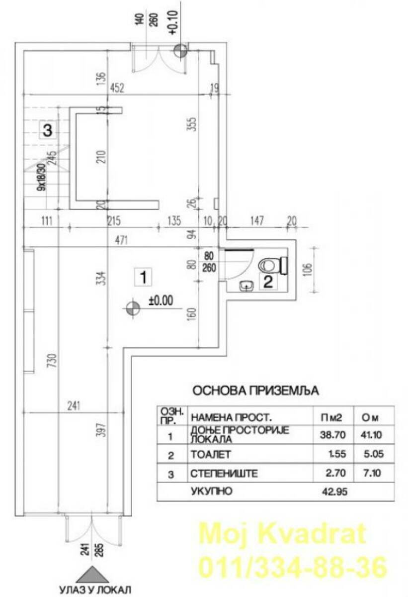 Ima dva nivoa (prizemlje 43m2 + sprat 71m2) i pogodan je za razne delatnosti: ugostiteljstvo, kancelarije, kozmetički ili frizerski salon...