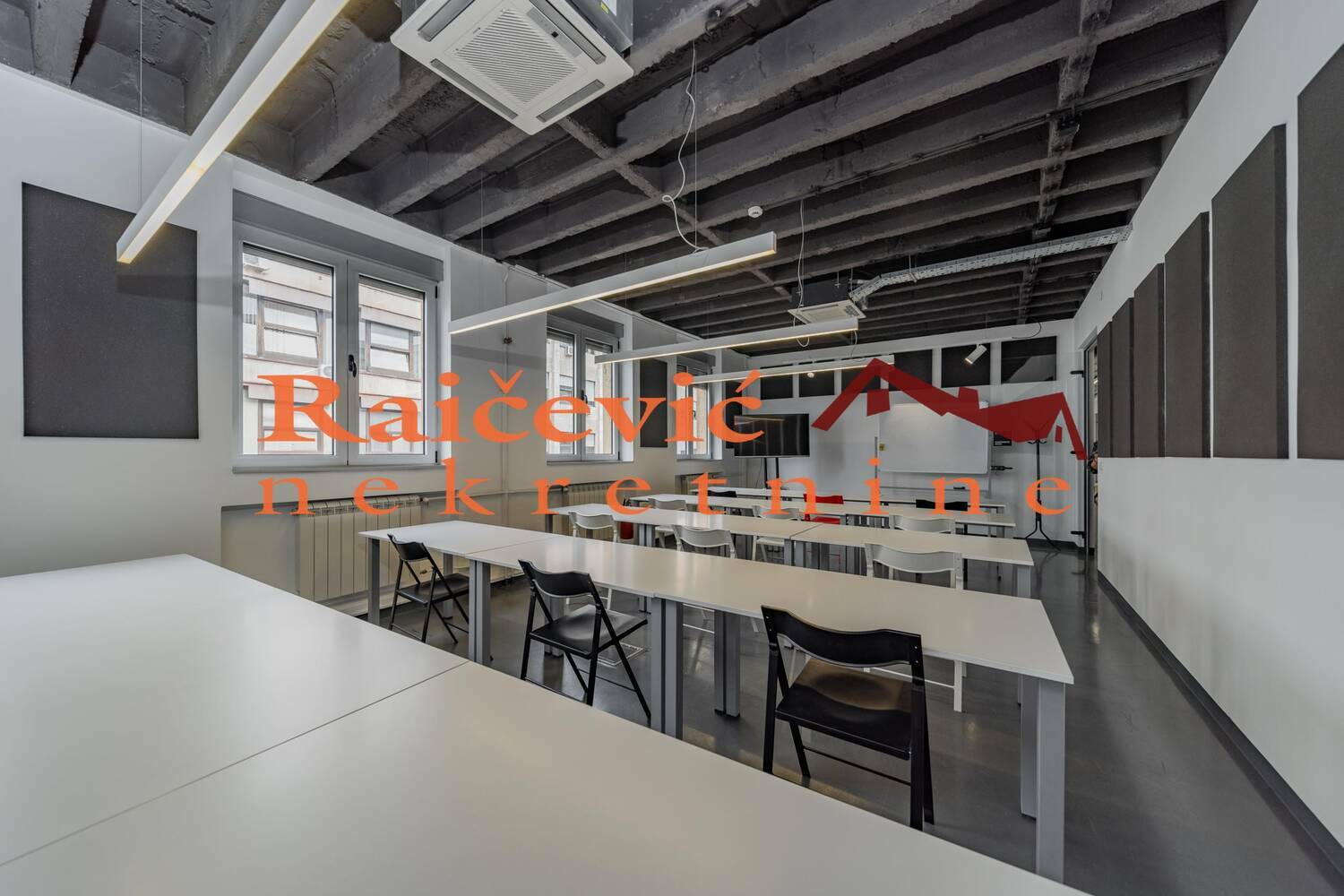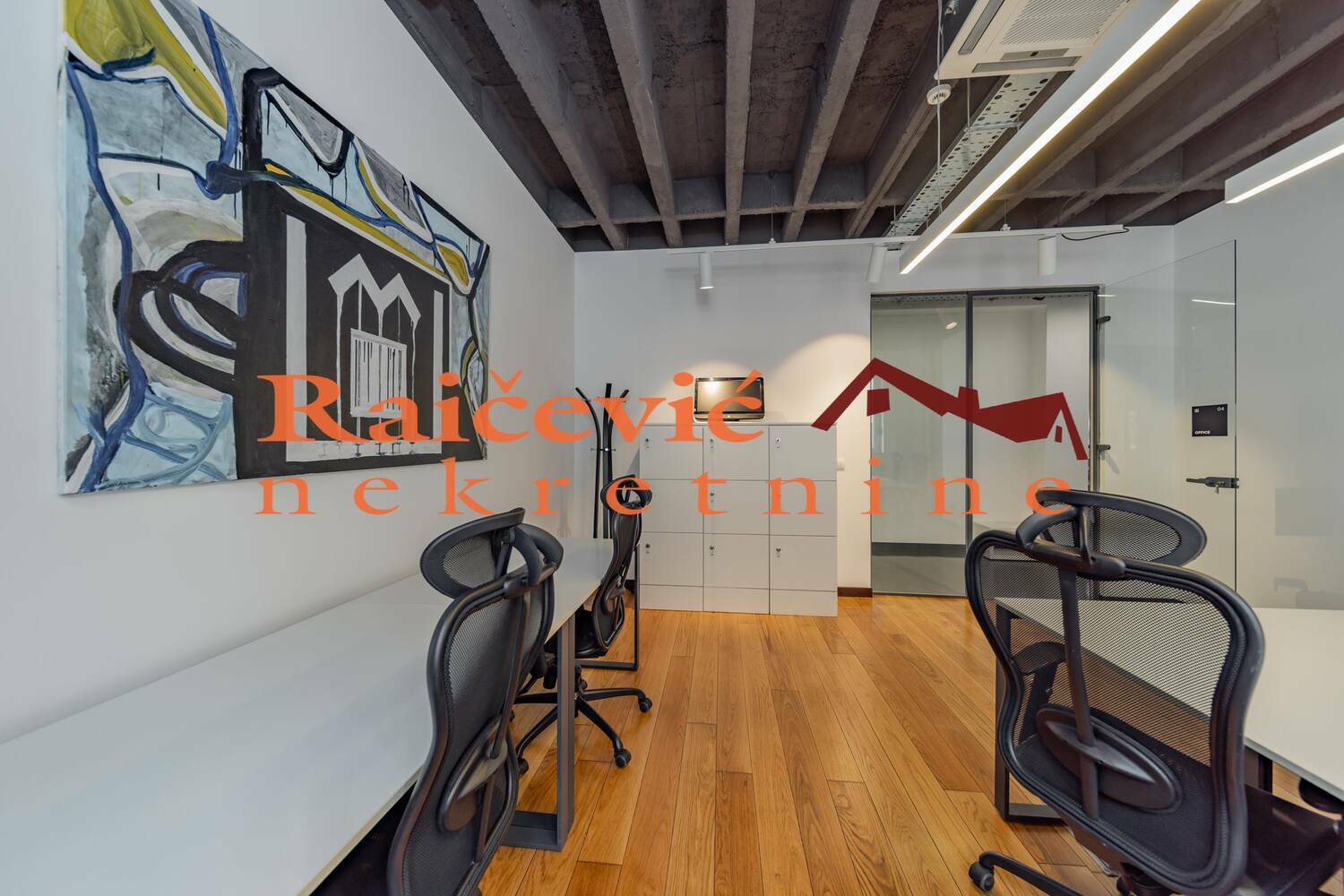 Oprema luksuznim ergonomskim kancelarijskim namestajem, prilagodjenim svetlima za rad na racunarima, klimatizovane prostorije, prirodno svetlo, ormarici.