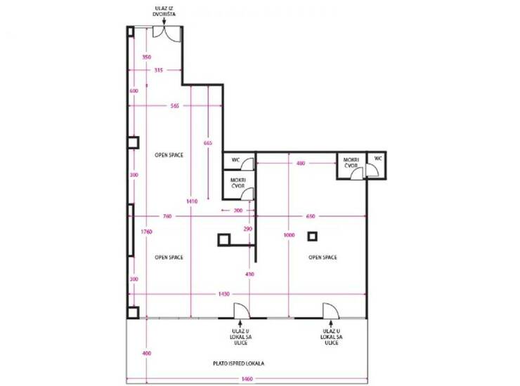 Prostor nudi odličan potencijal za poslovanje koje zahteva dobru prezentaciju, protok ljudi i dodatni spoljašnji prostor.