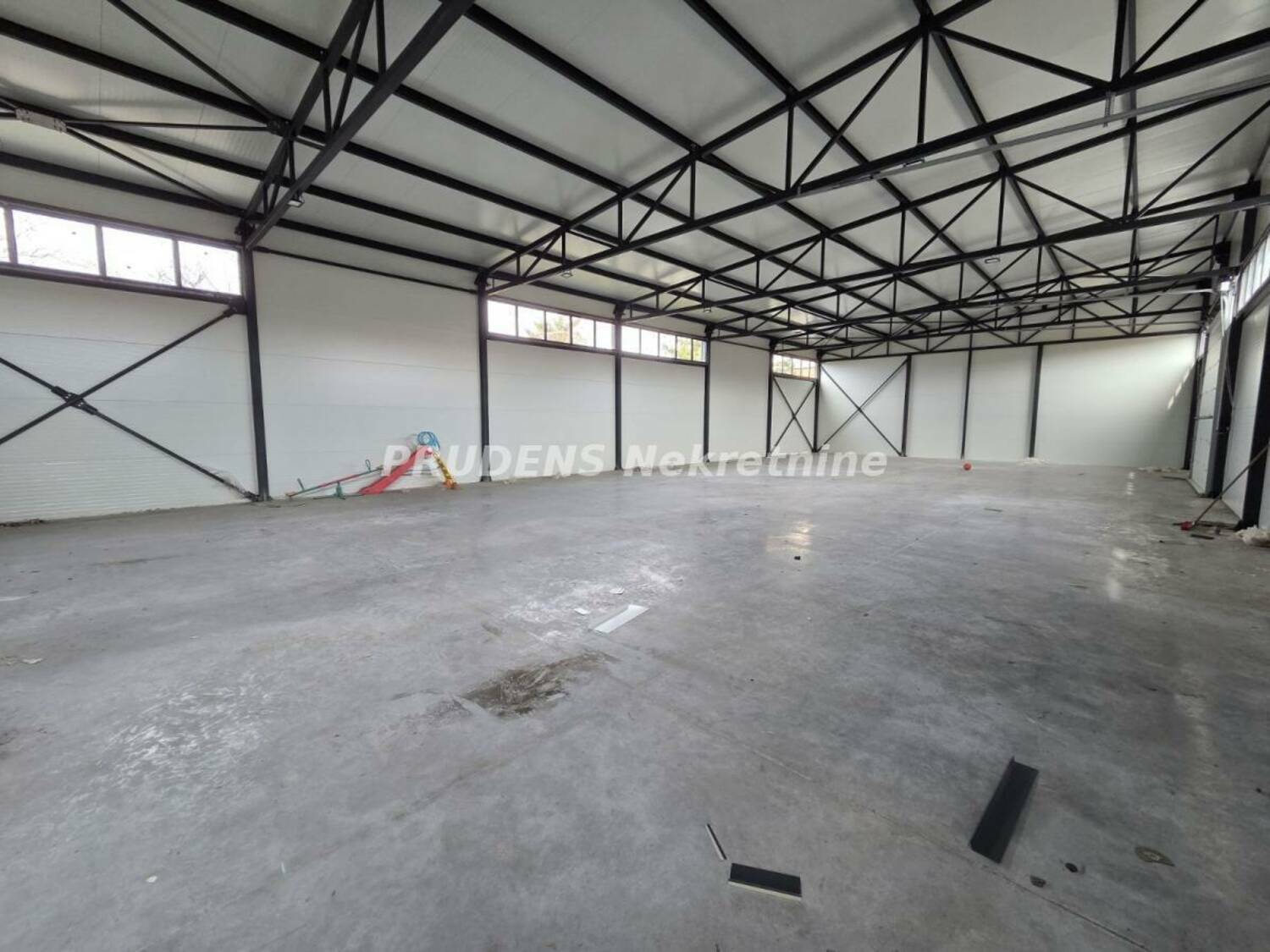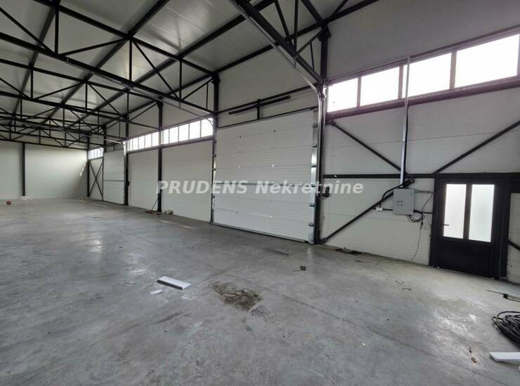 Nova hala kod skretanja za aerodrom, površine 420 kvadrata sa dva kamionska prilaza (rolo vrata), dimenzije 30x14 metara, visina korisnog prostora 5 metara.