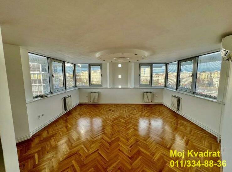 Izdaje se jedinstven stan (poslovni prostor) na vrhu zgrade, na šestom spratu, na Novom Beogradu, u neposrednoj blizini Arene i Novog Merkatora. Stan, svojom funkcionalnošću, kao i panoramskim pogledom na tri strane sveta, predstavlja idealno mesto za rad u prijatnom ambijentu.