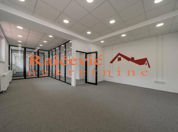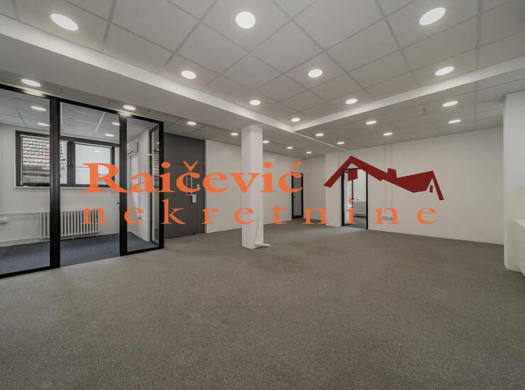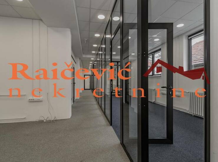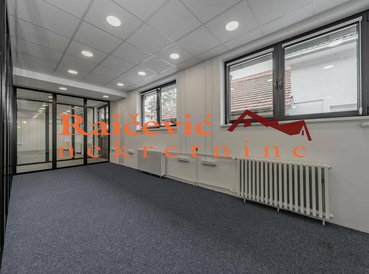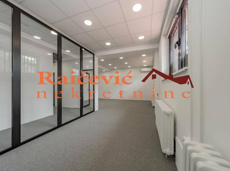 Luksuzan poslovni prostor u okviru kuce, cela etaza, sa savremenom i modernom opremom. Funkcionalan raspored, uz mogucnost montaznog pregradjivanja prema potrebama zakupca. Miran kraj, parking prostor slobodan, bez zoniranja.