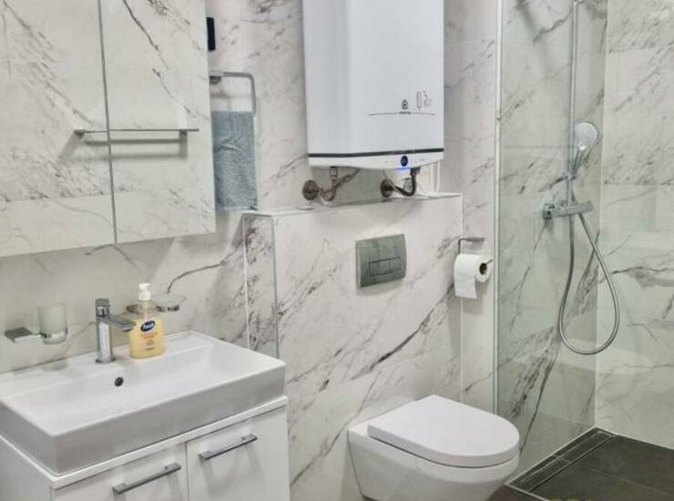Apartment features: Size: 70 m², layout: Three-room apartment (2 bedrooms), 2 bathrooms, storage room, underfloor heating, smart home system, fan coil heating and cooling system.