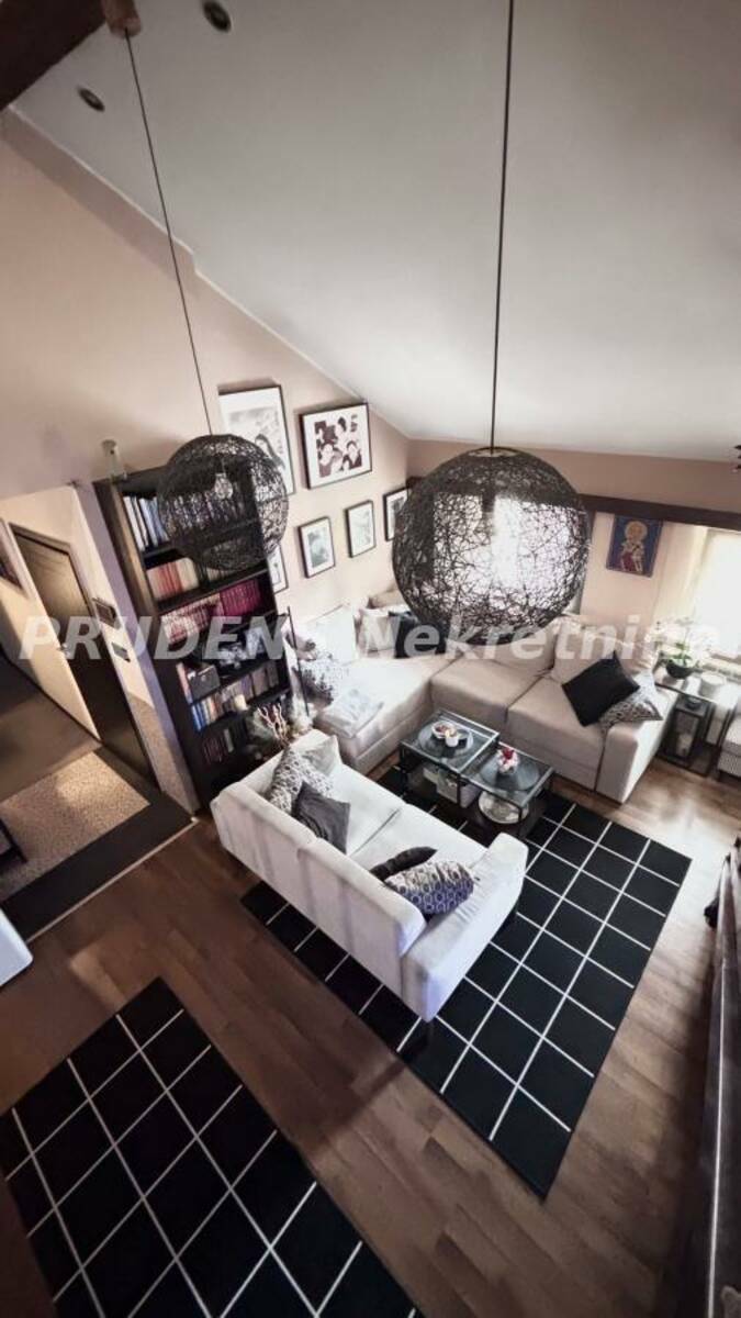 Stan je na dva nivoa, sa galerijom, potpuno je renoviran (PVC i ALU stolarija,, tarket, LVT i tekstilne podne obloge, block-lock čelična vrata...). Izdaje se komplet namešten i opremljen tehnikom (mašina za pranje i sušenje veša)..