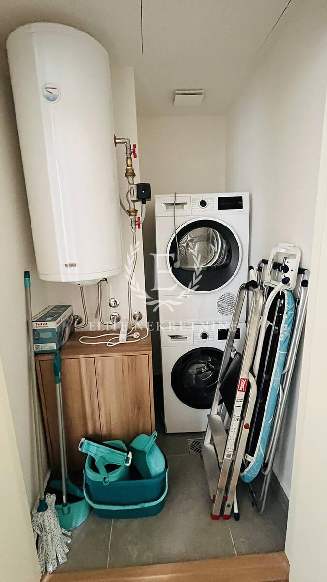 Površina: 77, 66 m² sa terasom Struktura: elegantan dnevni prostor, 2 spavaće sobe, 2 kupatila, vešernica i terasa. Centralno grejanje po potrošnji, 3 klima uređaja.