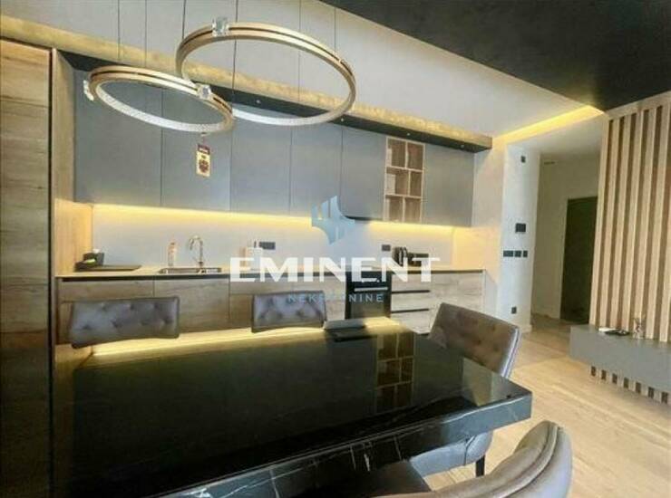 Komforan, čine ga - dnevni boravak, trpezarija, kuhinja, dve spavaće sobe, od kojih je jedna soba master sa sopstvenim kupatilom, dodatno kupatilo i terasa. Stan je opremljen kvalitetnom tehnikom i nameštajem. Zgrada poseduje prostrani lobi, profesionalnu recepciju/portir 24/7, centralno grejanje po utrošku, ulaz sa video nadzorom, centralni sistem za odlaganje otpada, uređeno zajedničko dvorište sa dečijim igralištem i prostorom za opuštanje. Uz stan se izdaje i garažno mesto, uračunato u cenu.