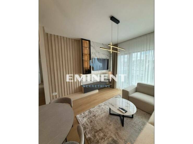 U ponudi je vrlo luksuzan stan, jako lepo sređen, opremljen kvalitetnim nameštajem i tehnikom, poseduje dve spavaće sobe, od kojih je jedna soba master, sa sopstvenim kupatilom, dodatno kupatilo, ostavu i terasu. Garažno mesto uz doplatu 100 eur.