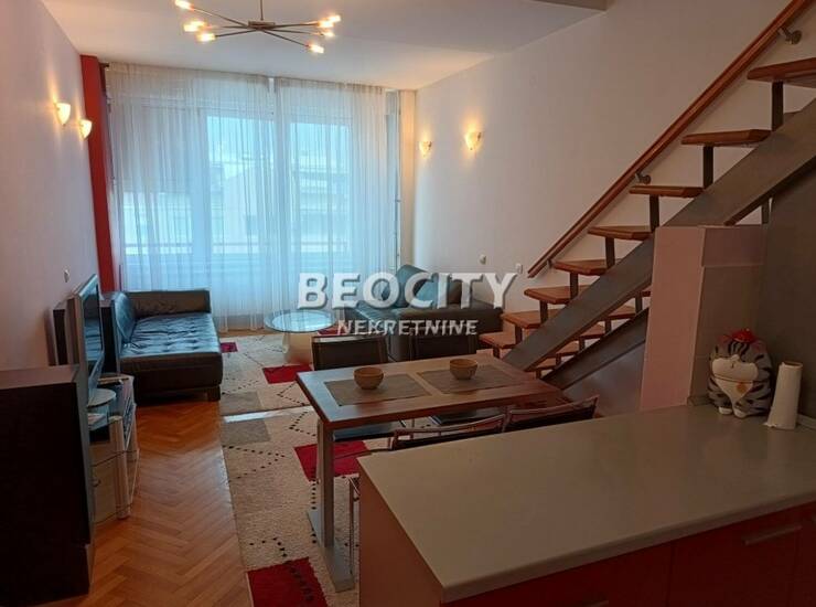 Agencijski ID: 125943, VI/VI, klima, lift. LUX, atraktivan dupleks, komforan i funkcionalan, svetao. Poseduje veliki dnevni borevak, sa trpezarijom i kuhinjom, na gornjem nivou prostrana spavaca soba i radni deo. Dva kupatila, sa tus kabinama, na gornjem i donjem nivou. Stan je klimatizovan, dva klima uredjaja. Potpuno je namesten i opremljen novim stvarima i tehnikom.