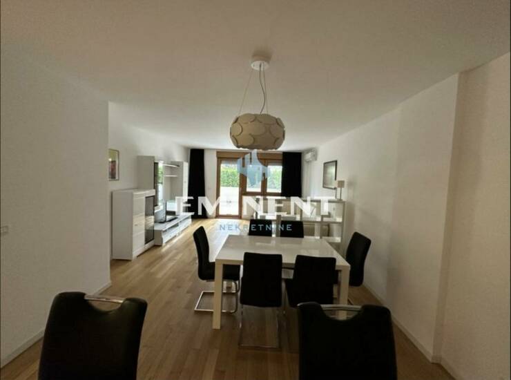 Lepo sređen, komforan stan u lux naselju A blok, potpuno opremljen, odvojena spavaća soba, terasa - bašta površine 30m2, dvorišno orijentisan ka jako lepo uređenom dvorištu, cg po utrošku, video nadzor, garažno mesto uračunato u cenu.