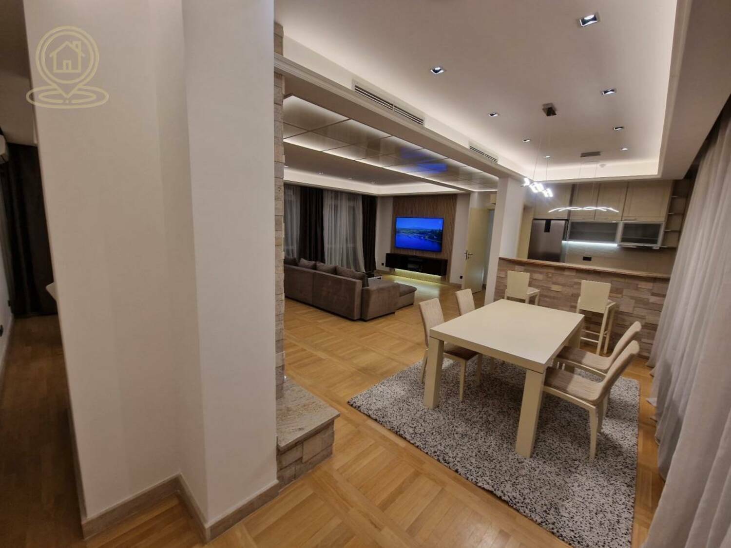 Iznajmljuje se luksuzan stan površine 148 m², smešten na 1. spratu (od ukupno 2), u ekskluzivnom kompleksu koji pruža potpunu privatnost.