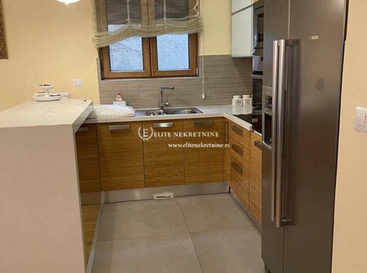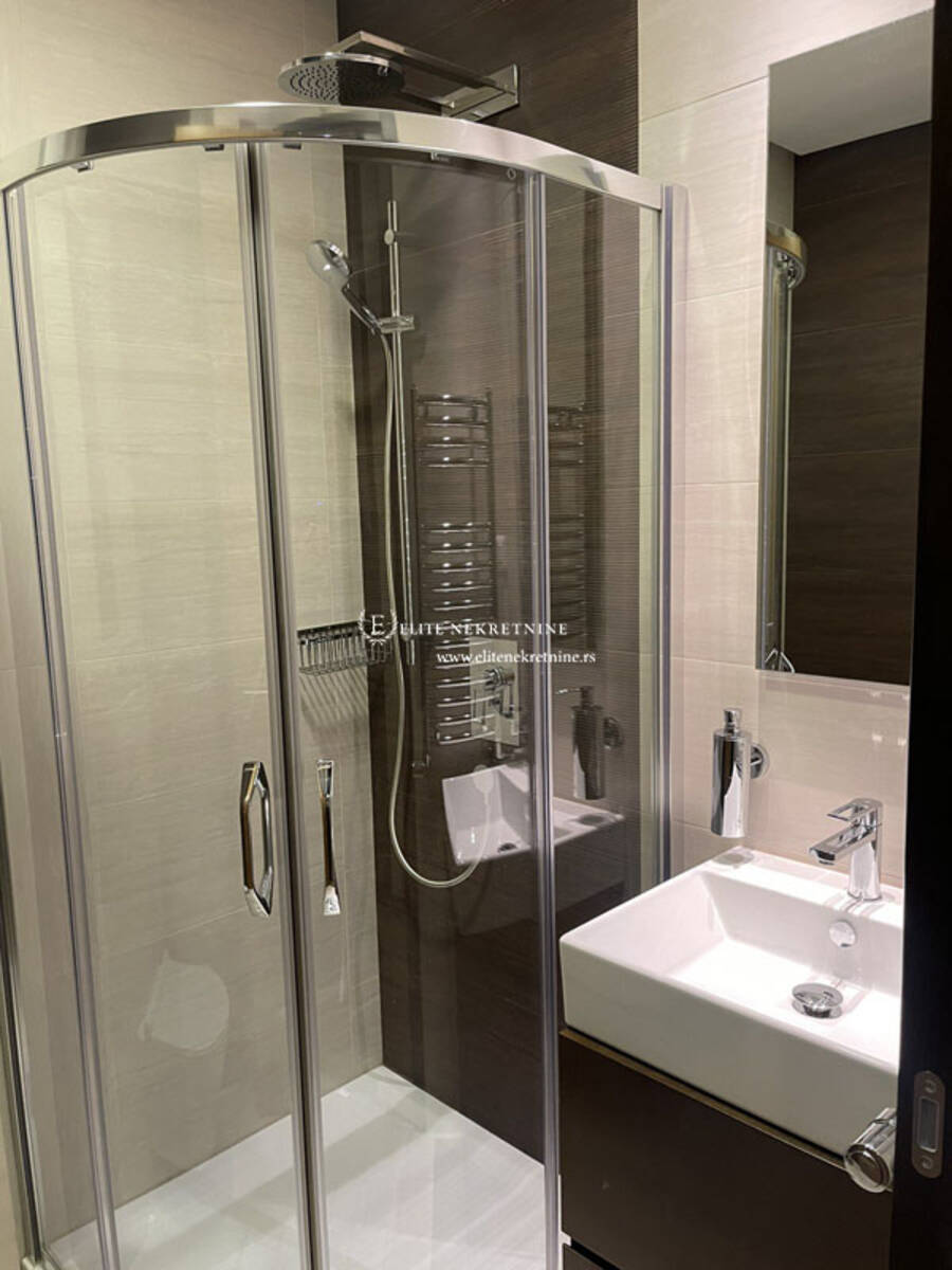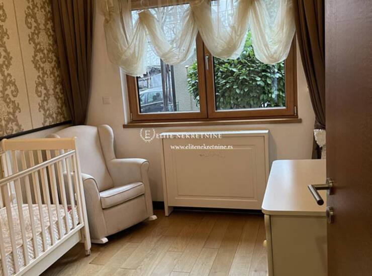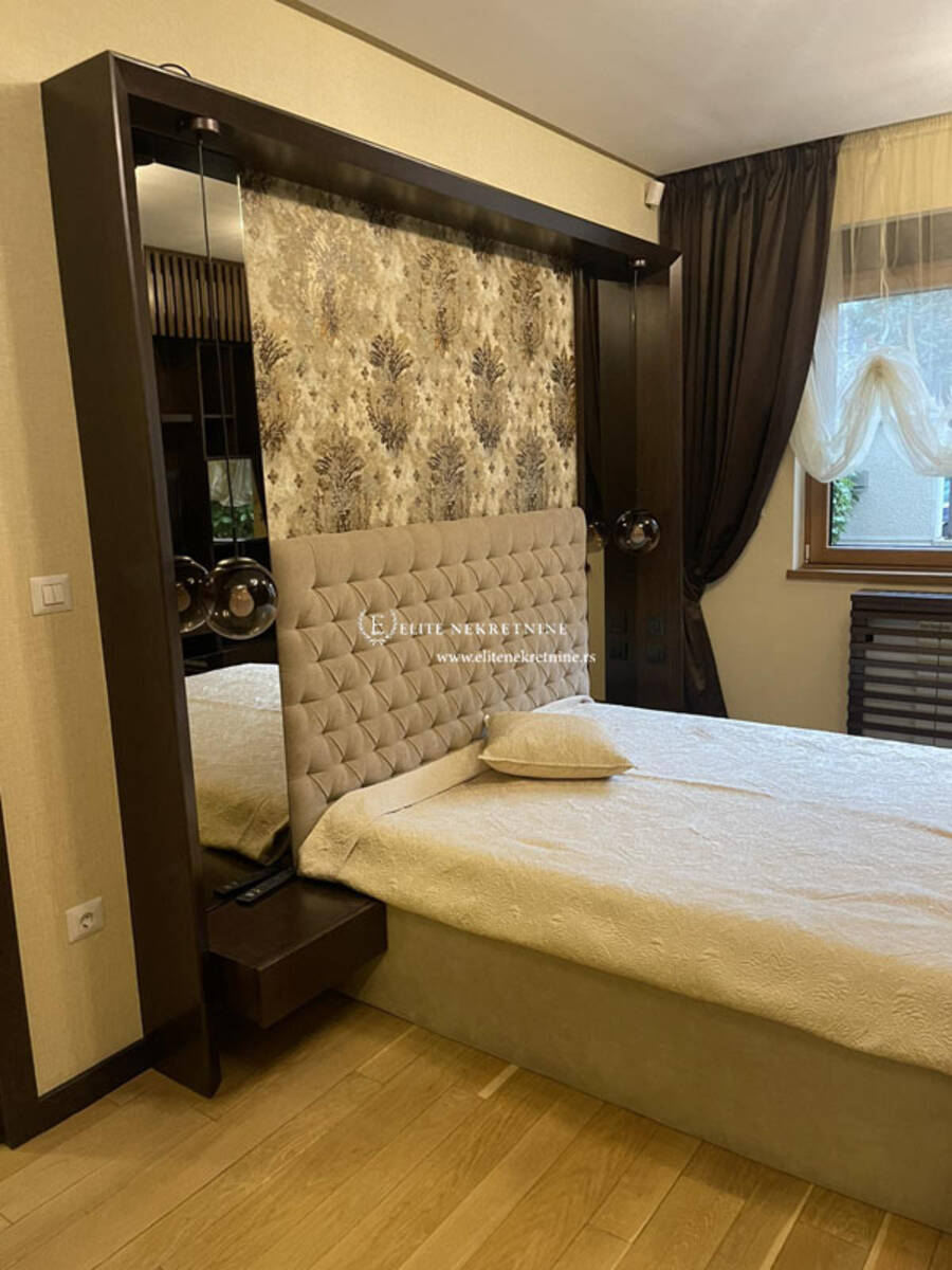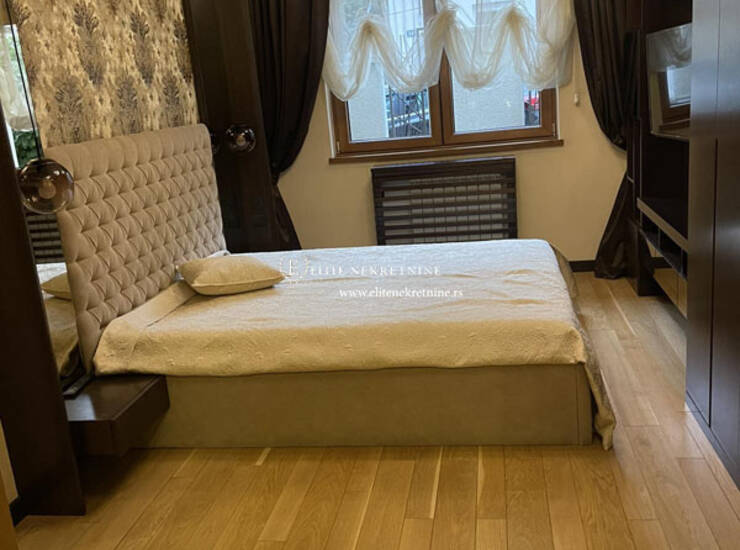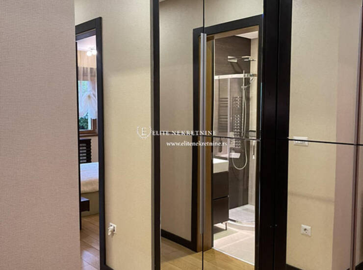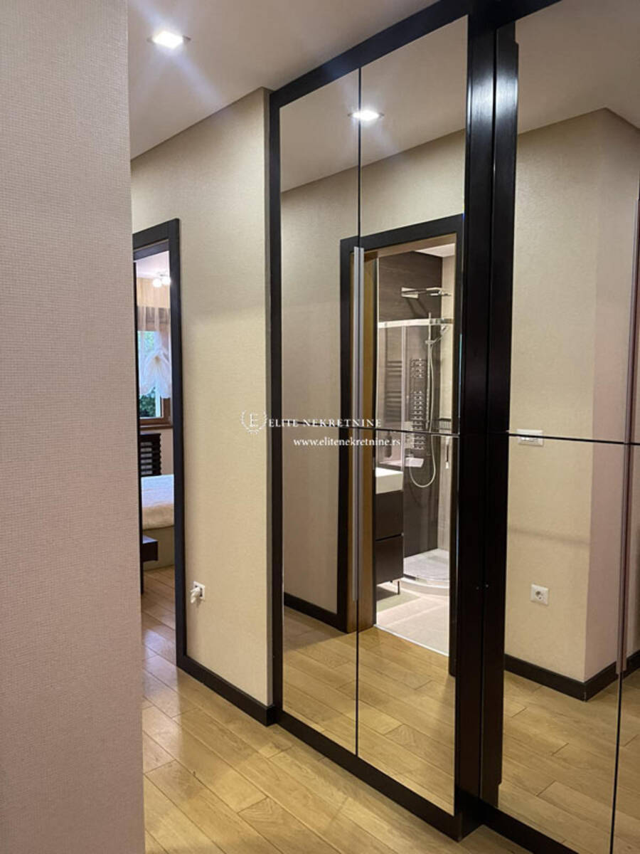 Stan raspolaže sa tri komforne spavaće sobe, dva moderno opremljena kupatila, kao i dodatnim toaletom koji je funkcionalno organizovan kao vešernica. Svaki detalj enterijera pažljivo je biran – od vrhunskih podnih obloga do sofisticirane sanitarije i stolarije visokog kvaliteta.