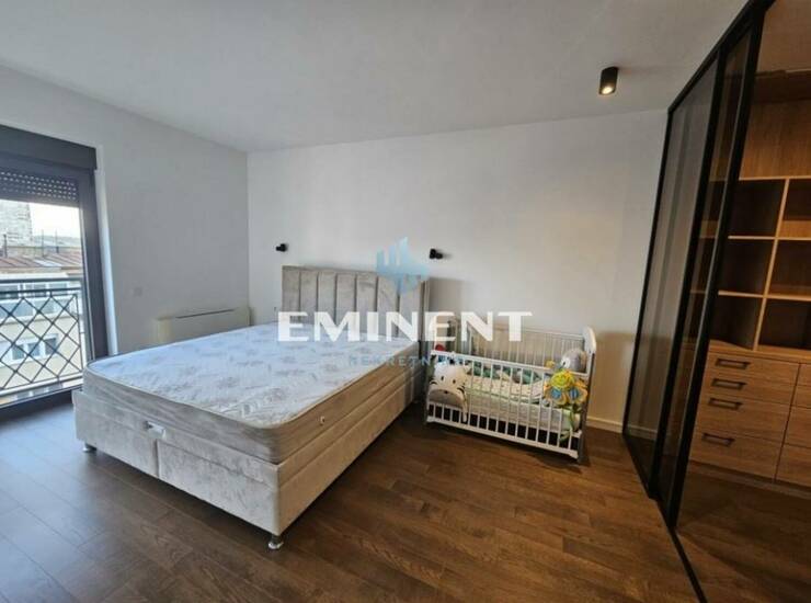Veoma komforan i funkcionalan stan u kvalitetnoj novoj zgradi, nastao spajanjem dva stana, ima dva ulaza, opremljen je kvalitetnim nameštajem i tehnikom, poseduje tri spavaće sobe, od kojih je glavna soba opremljena i poseduje prelep walk in garderober, a druge dve sobe će biti opremljene po dogovoru, dva kupatila, toalet i dve terase. Grejanje je geotermalno. Postoji mogućnost zakupa garažnog mesta uz doplatu 100 eur.