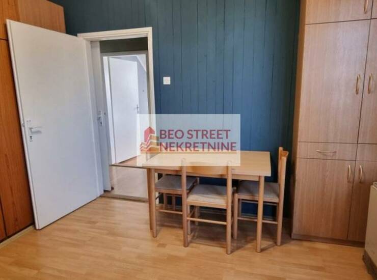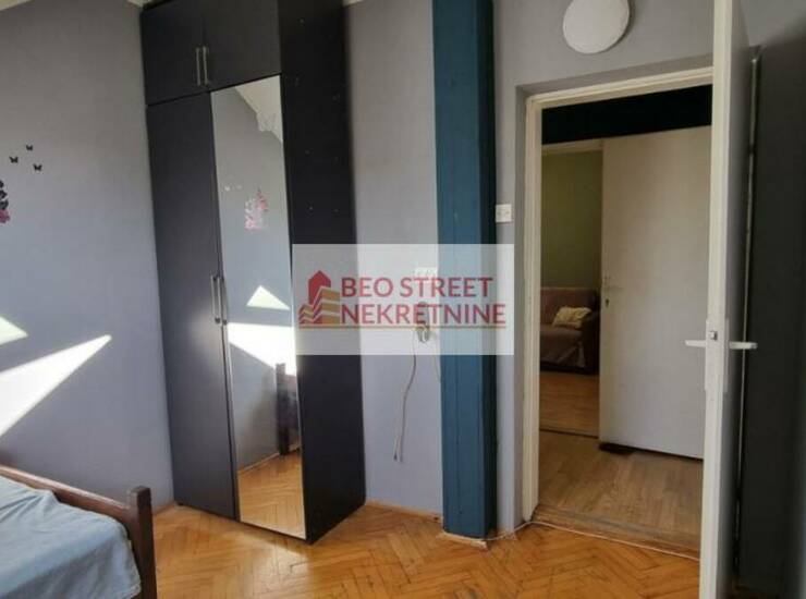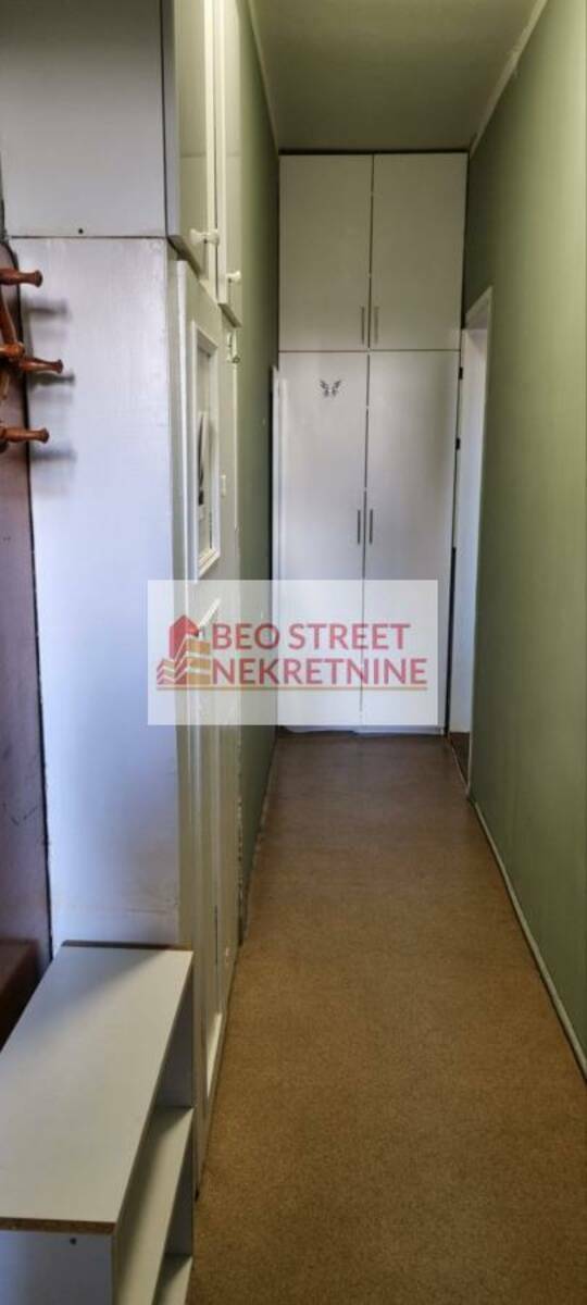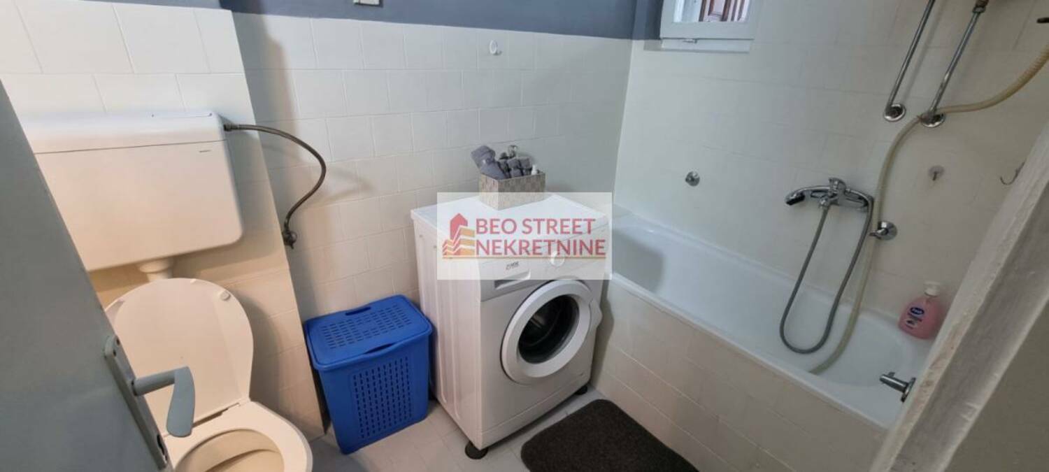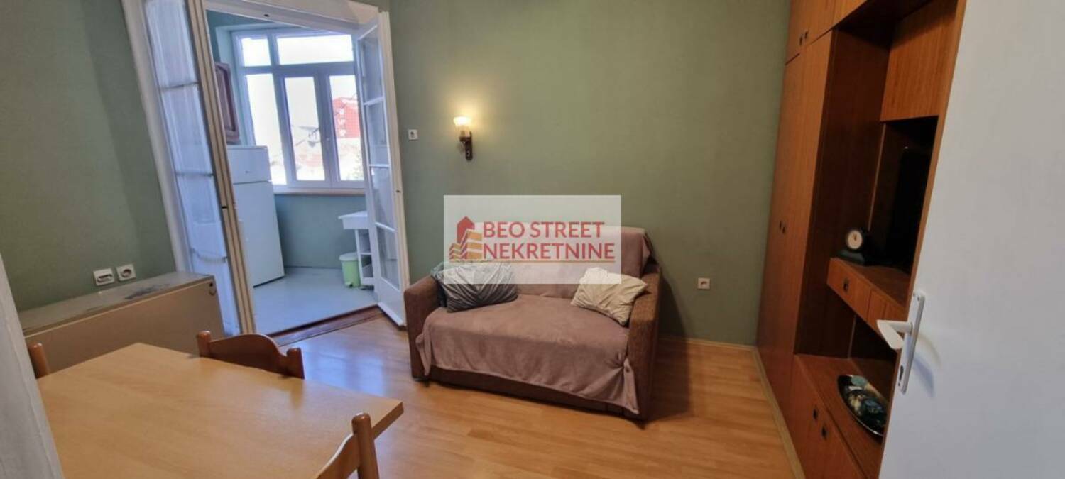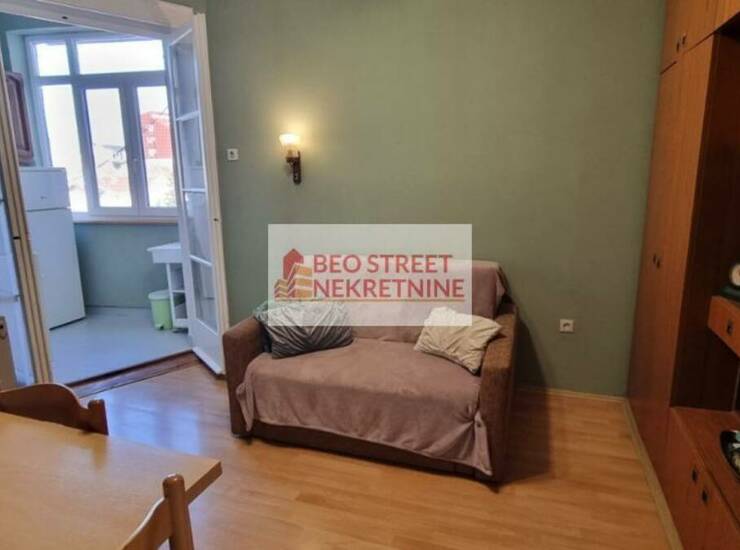Stan ima 35m² i sastoji se od 2 hodnika, dnevne sobe sa trpezarijom, kuhinje, kupatila i spavace sobe. Dvostrano je orijentisan, gleda sa jedne strane ka dvoristu, a sa druge strane na ulicu. Stan se izdaje namesten, u dnevnoj sobi ima dvosed koji se moze pretvoriti u ležaj i u spavacoj sobi se nalazi krevet za jednu osobu. Od aparata ima frižider i šporet u kuhinji, televizor i TA pec u dnevnoj sobi, klima uredjaj (Midea, nije inverter), veš mašina u kupatilu, dok se u spavacoj sobi nalazi grejalica.