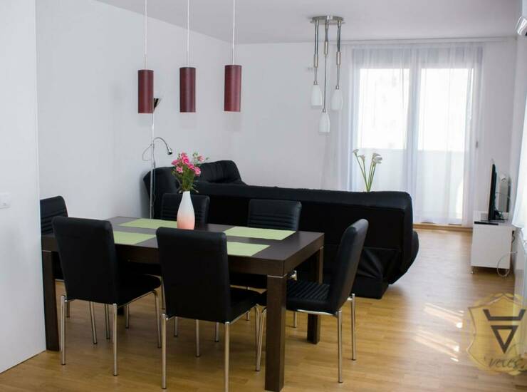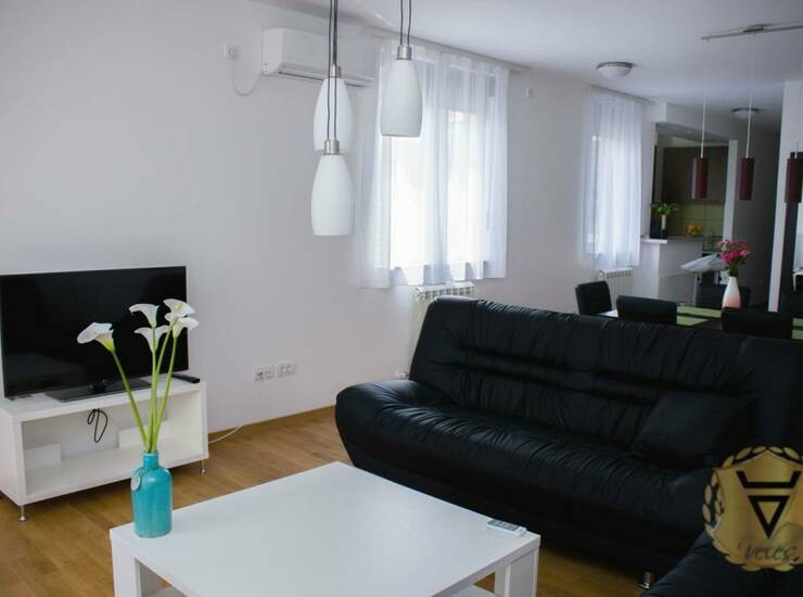Stan u praktično novoj zgradi, useljenoj 2017. godine. Dnevna soba, trpezarija, kuhinja, kupatilo, dodatni toalet, dve spavaće sobe, terasa. U svim sobama postoji klima uređaj.