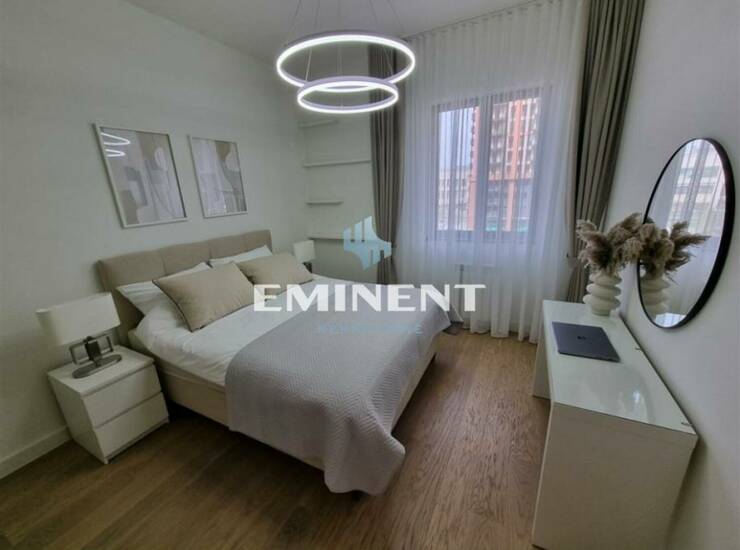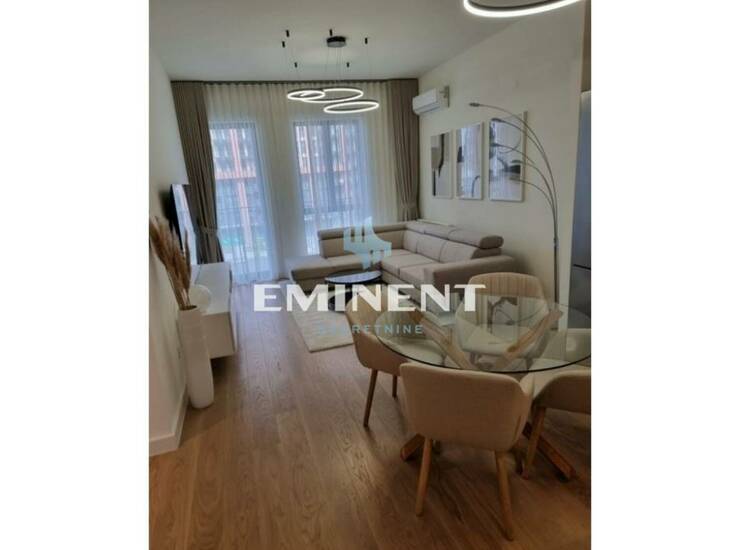 U ponudi je dvosoban stan, kvalitetno opremljen, luksuzno sređen, poseduje odvojenu spavaću sobu, terasa je orijentisana dvorišno. Uz stan se izdaje i garažno mesto uračunato u cenu. Svaka soba je klimatizovana, a hlađenje prostorija je omogućeno pomoću multisplit sistema. Stanarima su na raspolaganju i skladišne prostorije. Zgrada ima veliki lobi sa recepcijom i obezbeđenje. Najveća prednost zgrade je unutrašnje dvorište sa različitim sadržajima, kako za odmor i relaksaciju odraslih, tako i igralištem za decu.