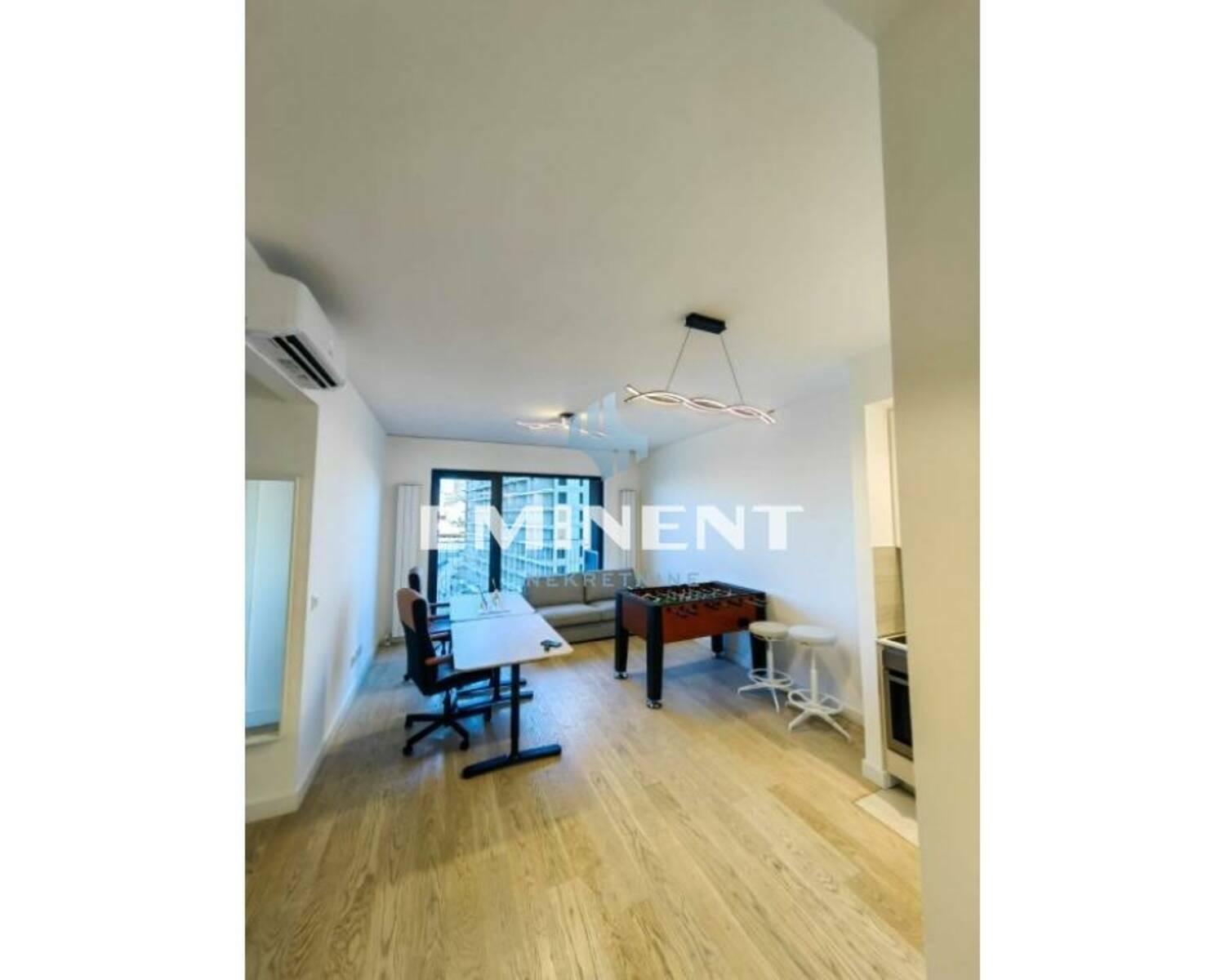 Komforan, lux stan u zgradi Aria, opremljena kuhinja, ugradni plakari, odvojena spavaća soba, grejanje je po utrošku, a hlađenje je obezbeđeno miltisplit sistemom. Zgrada poseduje lobi, recepciju, video nadzor, fizičko-tehničko obezbeđenje, kao i uređeni park. U cenu je uračunato garažno mesto. Pogodan za poslovni prostor.
