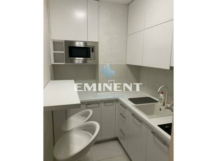 Lepo sređen stan u luksuznom naselju A blok, sa velikom terasom - baštom, dvorišno orijentisanom, potpuno opremljen, poseduje odvojenu spavaću sobu, cg je po utrošku, zgrada poseduje video nadzor, recepciju i portira 24/7. U naselju ima slobodnog parkinga.