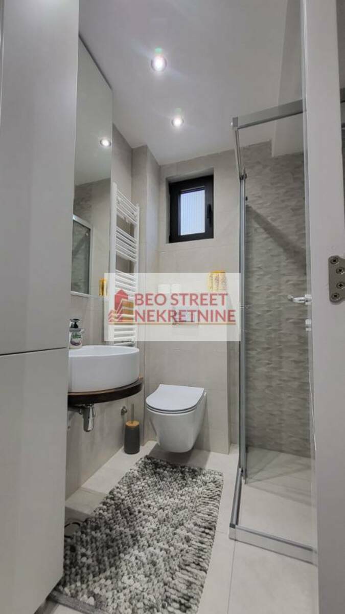 Izdaje se stan 40m2, prizemlje sa ogradjenim dvoristem od 100m2. Dnevna soba, kupatilo i spavaca. Interfon. Komunalije oko 100e mesecno (sbb 4900, infostan 1700, struja po potrosnji do sada 4-6000.) Grejanje: toplotne pumpe. Komplet opremljeno sa posudjem i aparatima u kuhinji, ves masina u kupatilu, usisivac, ram za prostiranje vesa, pegla i daska za peglanje...). Useljiv odmah. Kućni ljubimci nisu dozvoljeni