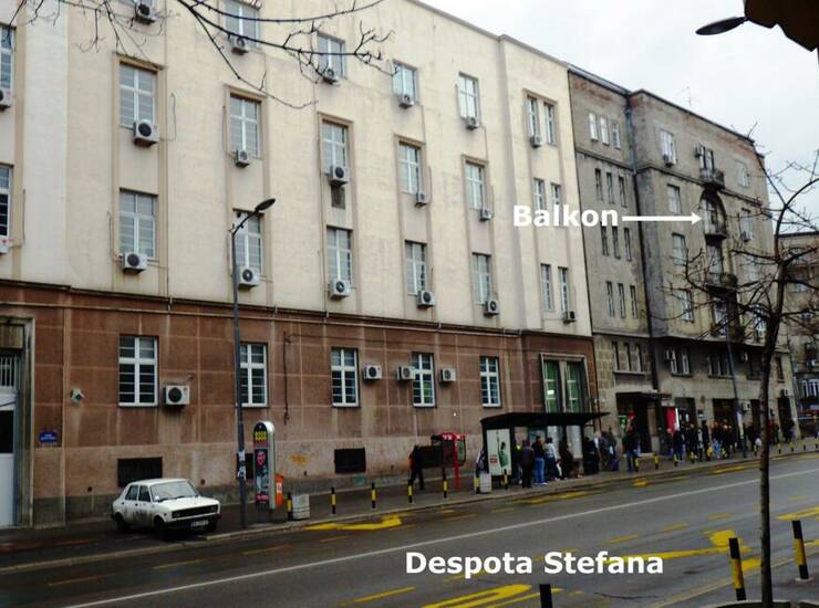 Beograd - Centar - na krugu „Dvojke“, ugao Džordža Vašingtona i Bulevara Despota Stefana. Stajališta Tramvaja i svih Autobuskih linija su ispred zgrade.