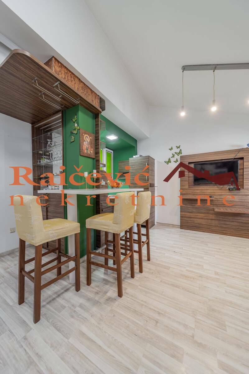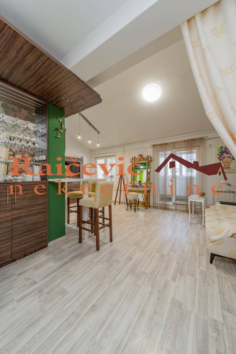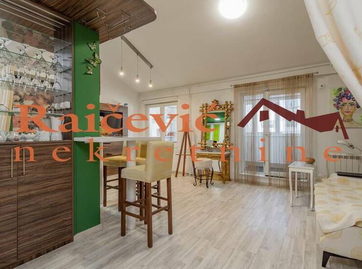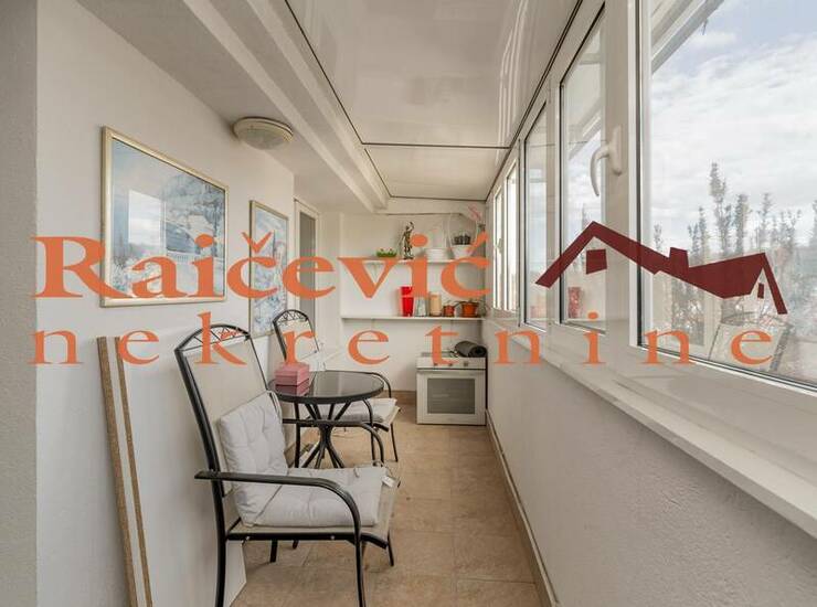 Funkcionalan stan na lepoj lokaciji. Prostrana terasa, zastakljena, sa letnjom kuhinjom i lepim, sirokim pogledom.