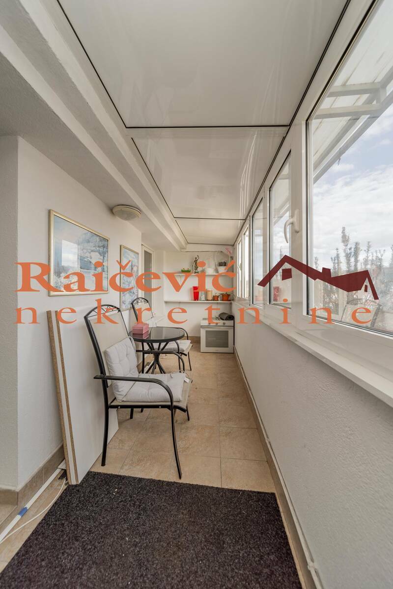 Funkcionalan stan na lepoj lokaciji. Prostrana terasa, zastakljena, sa letnjom kuhinjom i lepim, sirokim pogledom.
