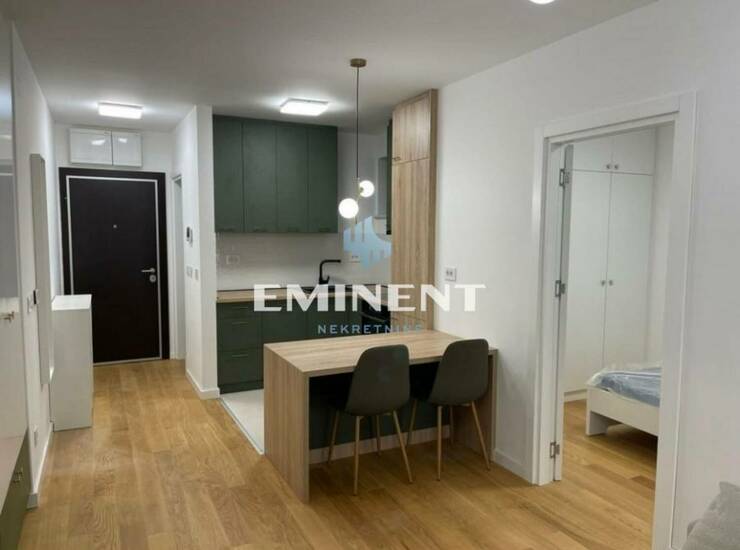 Lepo uređen, funkcionalan stan u novogradnji, potpuno opremljen, odvojena spavaća soba, mogućnost zakupa garažnog mesta uz doplatu 100 eur.