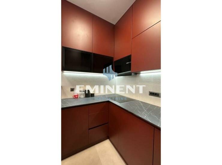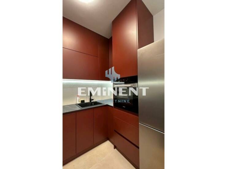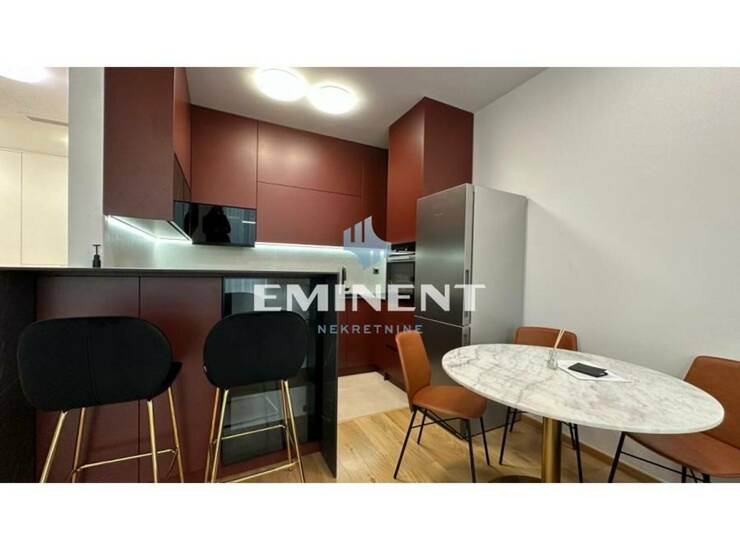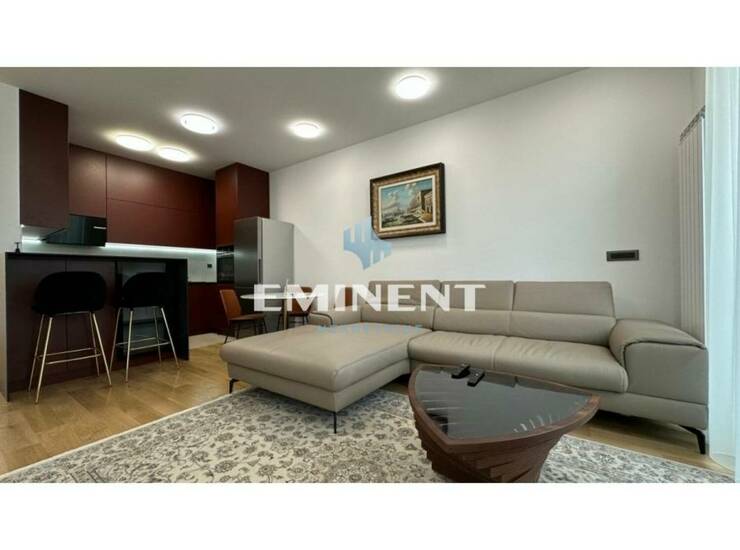 Stan je komforan, vrlo luksuzno uređen, opremljen kvalitetnim italijanskim nameštajem Natuzzi i najsavremenijom Miele tehnikom. Stan čini open space - dnevni boravak sa trpezarijom i kuhinjom, koji ima izlaz na prostranu terasu, spavaća soba, kupatilo i toalet. Svetao je, funkcionalan, instaliran je smart home sistem, grejanje je centralno sa kalorimetrima. U cenu zakupa uračunato je jedno garažno mesto.