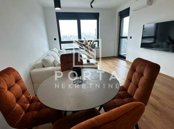 U jednom od najekskluzivnijih rezidencijalnih kompleksa u centru Beograda, izdaje se potpuno nov, luksuzno namešten dvosoban stan (55 m²) – idealan za one koji ne prave kompromise kada je kvalitet života u pitanju.