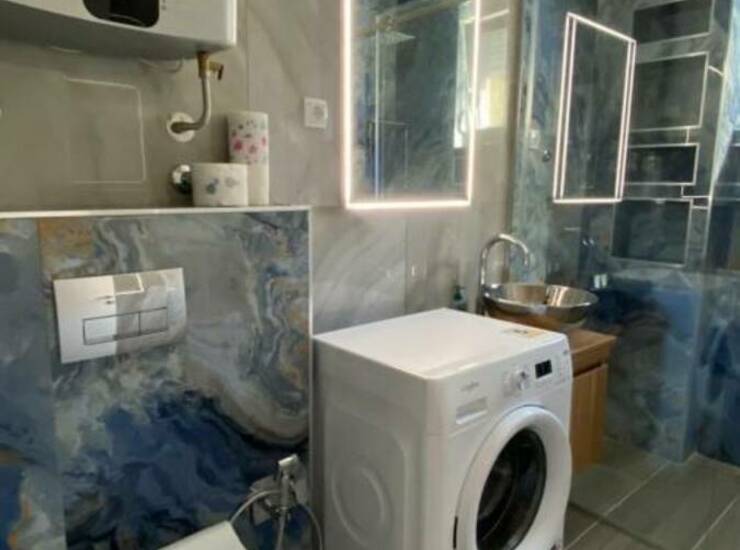 Stan je moderno i pažljivo uređen, sa detaljima koji pružaju osećaj topline i komfora, a svaki element enterijera odražava visok nivo estetike i kvaliteta.