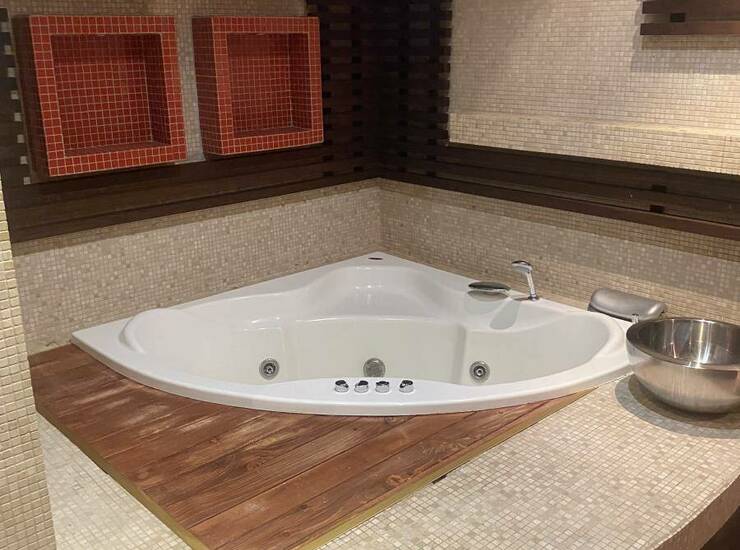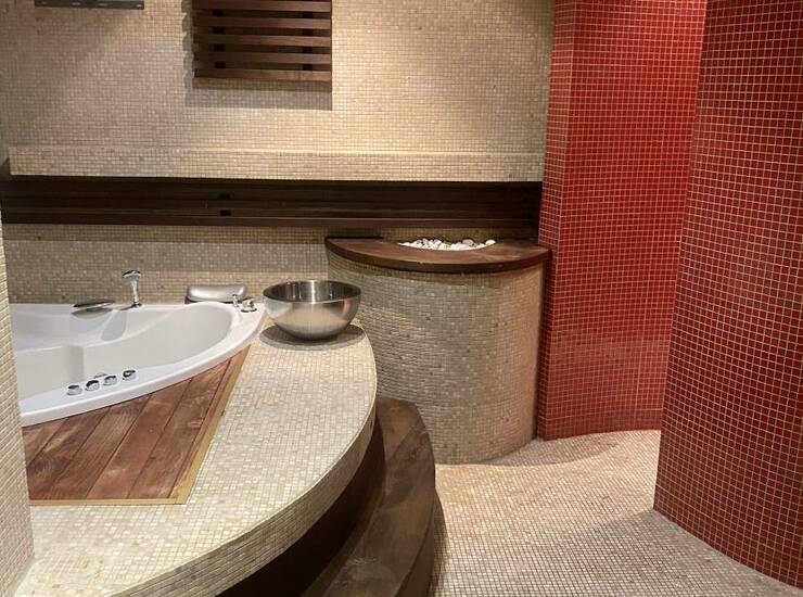 moderno opremljeno i luksuzno kupatilo sa saunom i đakuzijem,