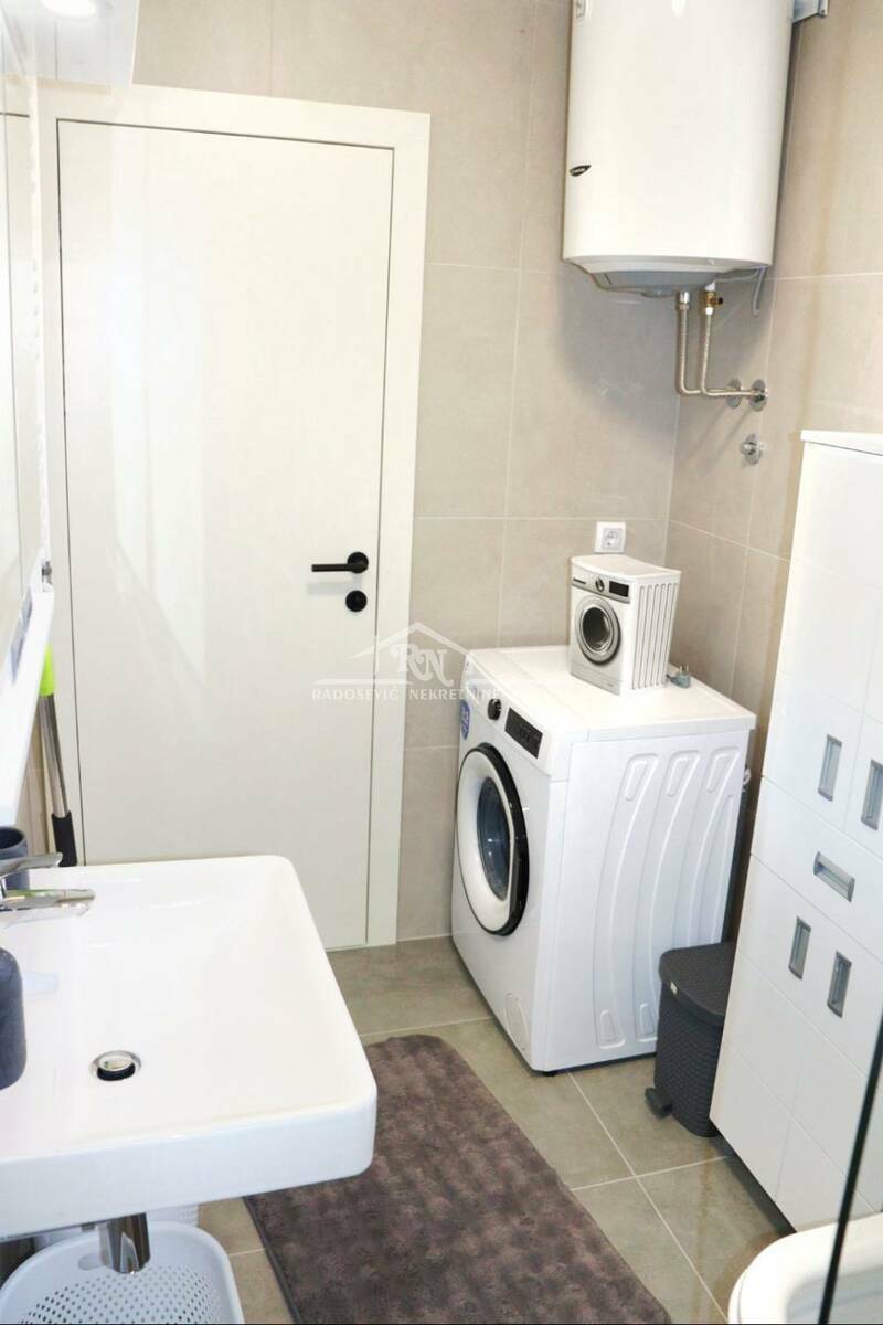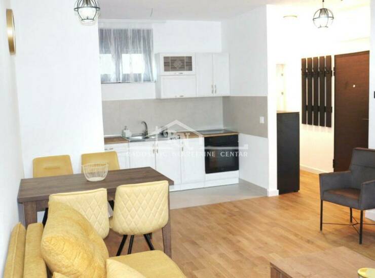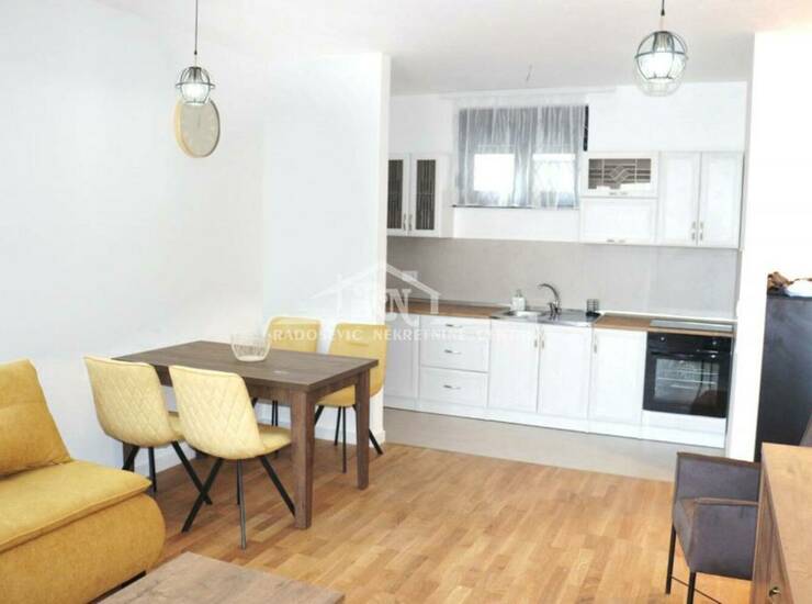 Stan je luksuzno opremljen novim nameštajem i uređajima. Pruža maksimalnu udobnost i estetski doživljaj.