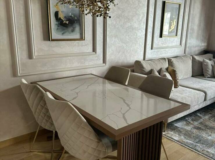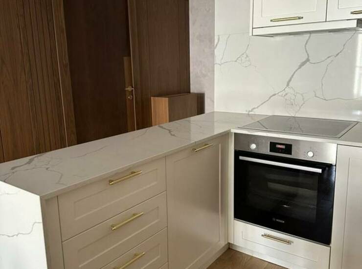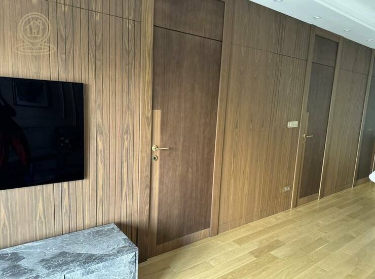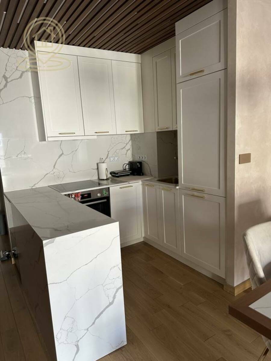 Stan je kompletno namešten ručno rađenim nameštajem po meri i vrhunskom Bosh tehnikom: klima uređaj, TV, mašina za pranje i sušenje veša, sudomašina, frižider, šporet, rerna, ugradni plakari.