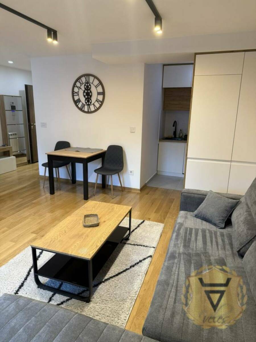 Stan ima dnevnu i spavaću sobu, kompletno opremljen nameštajem i belom tehnikom.