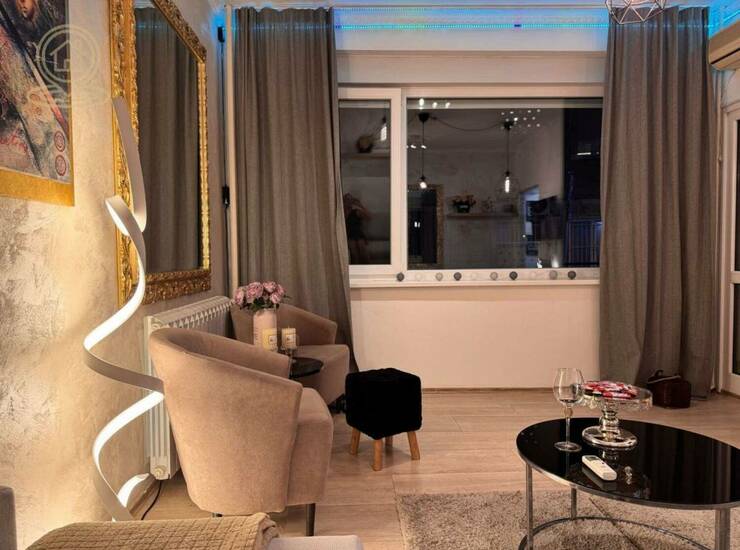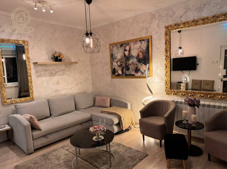Garsonjera je moderno uređena, kompletno nameštena i poseduje sve nove uređaje i nameštaj. Prostor je odlično iskorišćen i pruža maksimalnu udobnost na manjoj kvadraturi.
