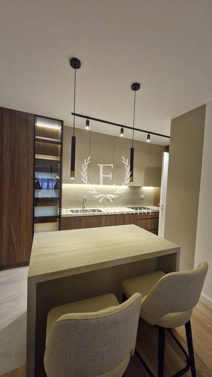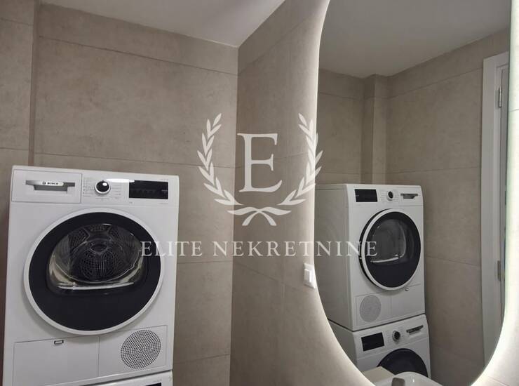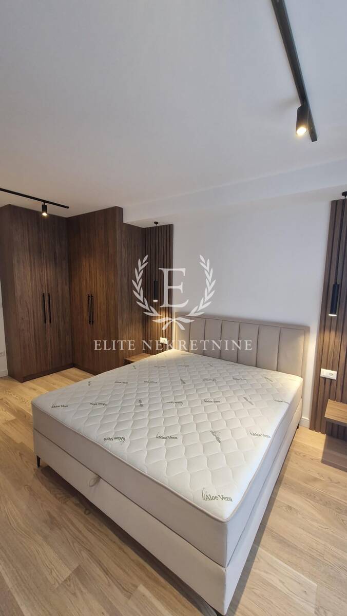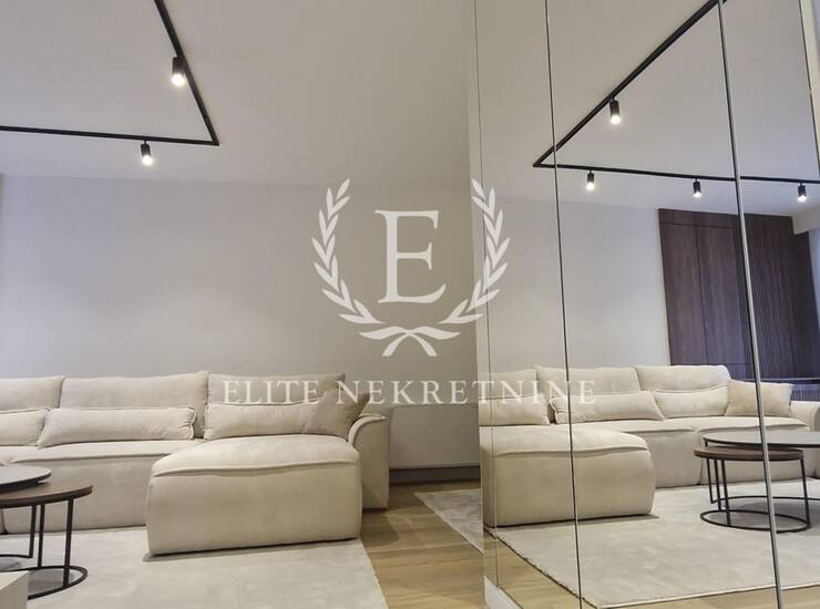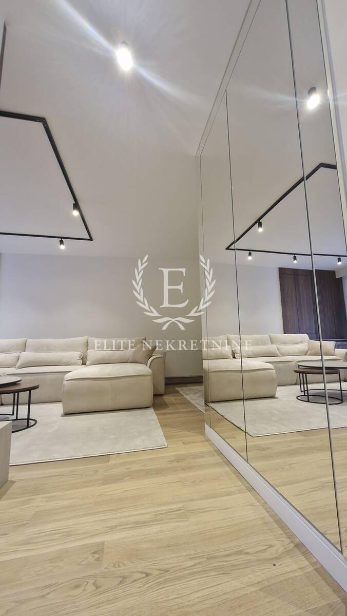 Enterijer je u potpunosti opremljen nameštajem i tehnikom vrhunskog kvaliteta, uz pažljivo odabrane materijale, tople drvene teksture i sofisticirano ambijentalno osvetljenje koje naglašava eleganciju i osećaj doma. Svaki detalj je promišljeno dizajniran kako bi prostor pružio maksimalan nivo udobnosti i estetike.