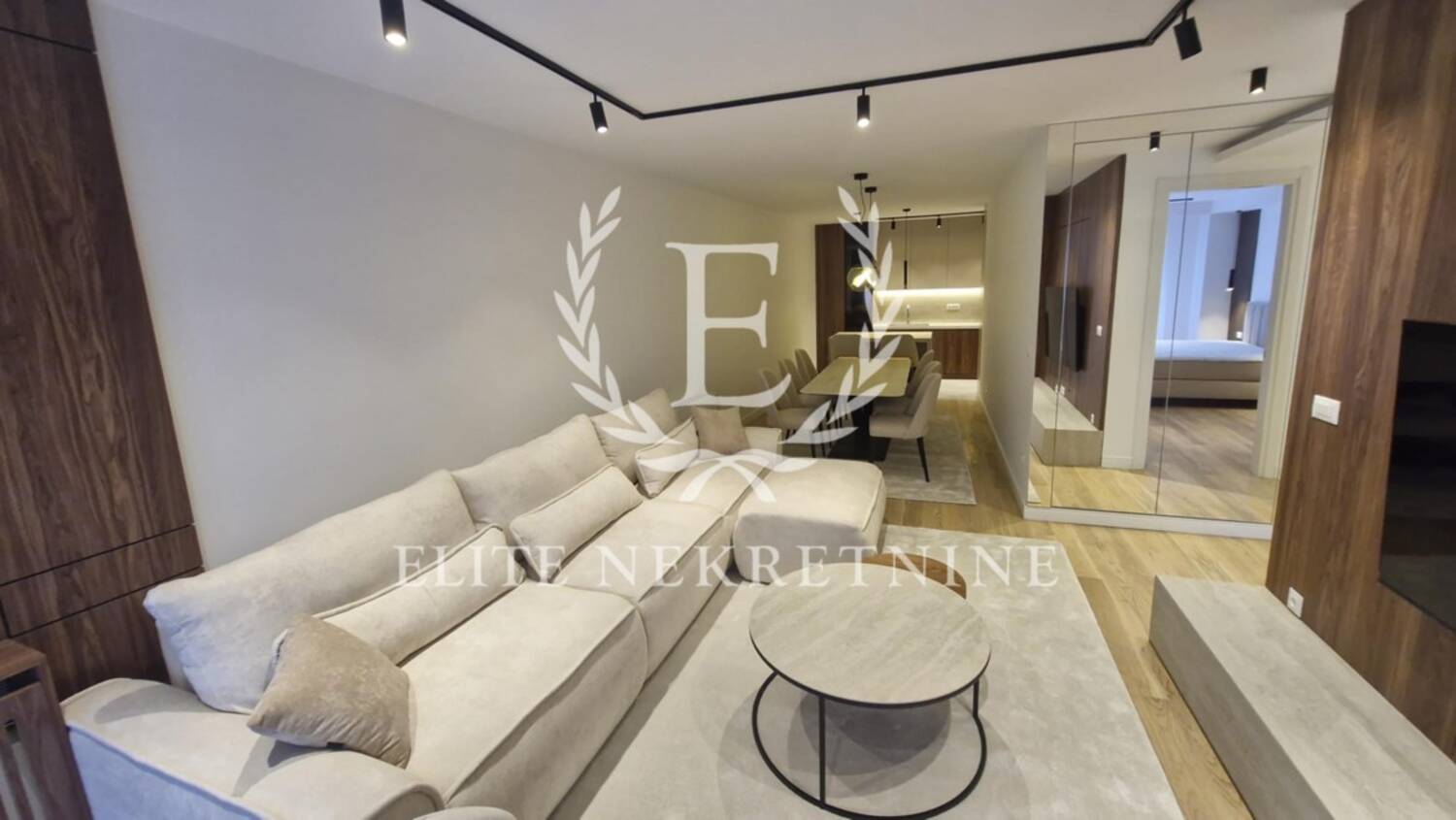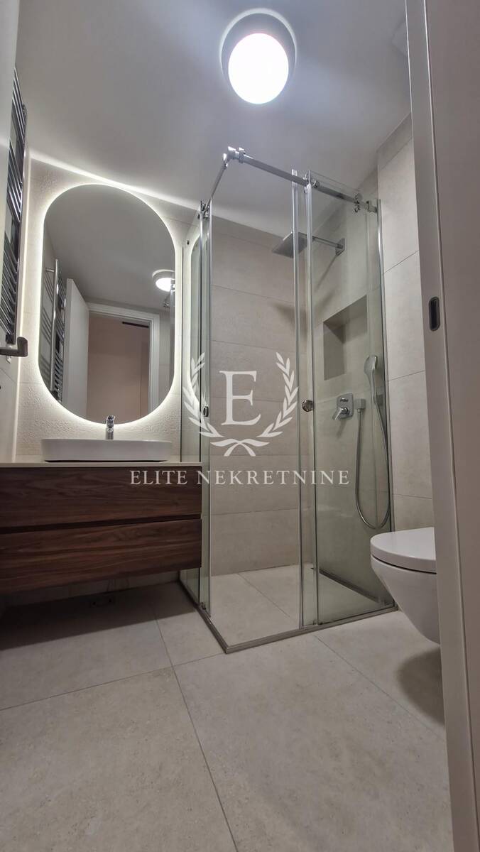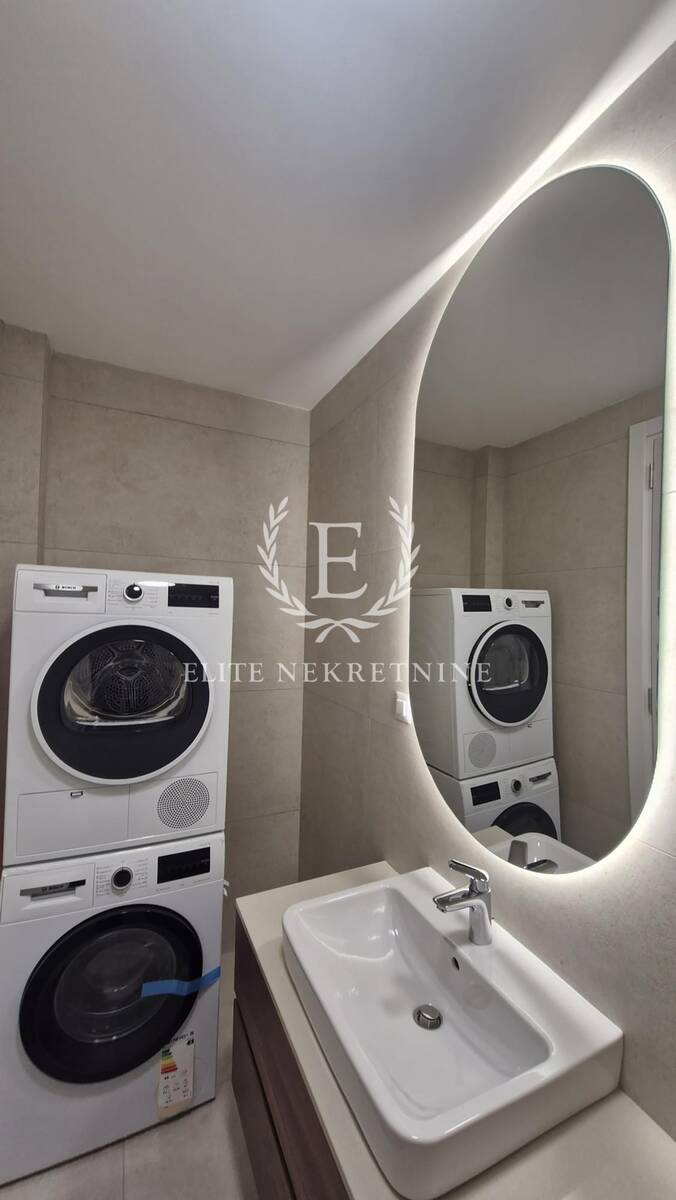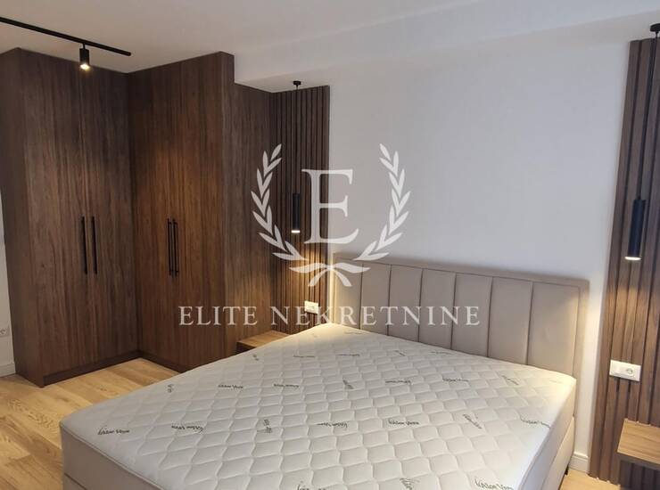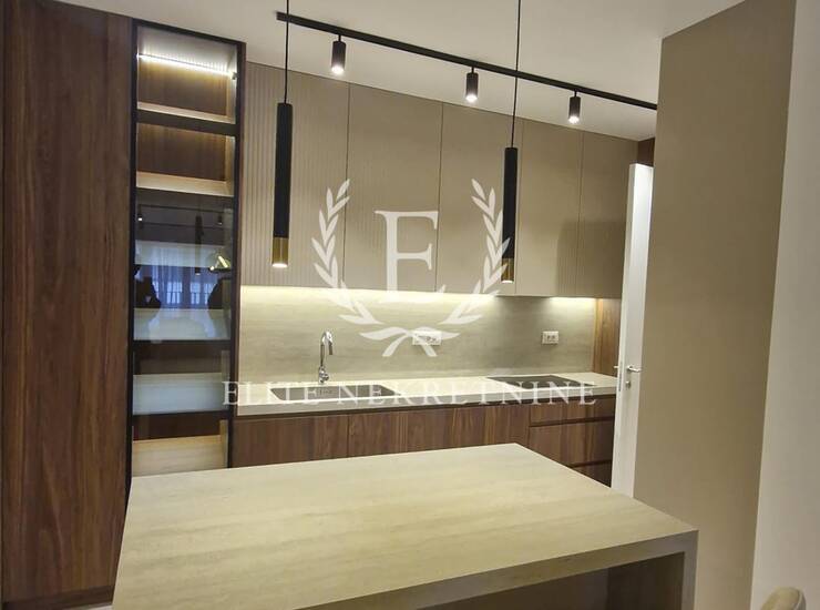 Enterijer je u potpunosti opremljen nameštajem i tehnikom vrhunskog kvaliteta, uz pažljivo odabrane materijale, tople drvene teksture i sofisticirano ambijentalno osvetljenje koje naglašava eleganciju i osećaj doma. Svaki detalj je promišljeno dizajniran kako bi prostor pružio maksimalan nivo udobnosti i estetike.