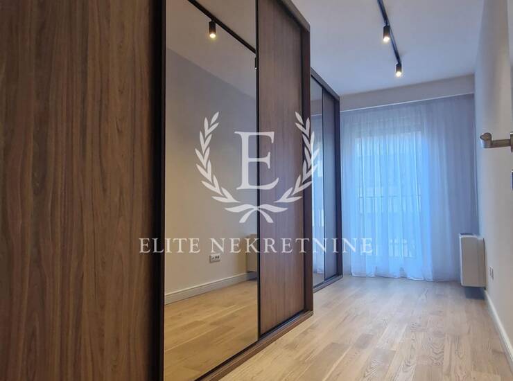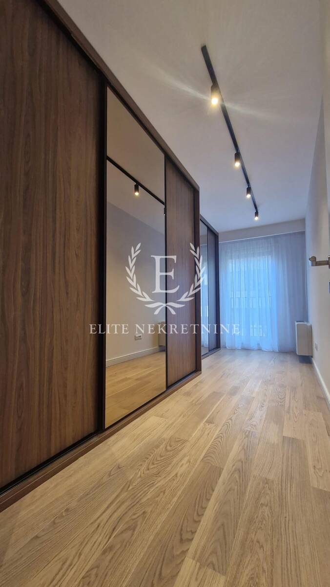Stan se odlikuje izuzetnom prostornošću i obiljem prirodne svetlosti. Centralni deo čini elegantan dnevni boravak otvorenog koncepta, skladno povezan sa trpezarijom i savremeno dizajniranom kuhinjom, opremljenom aparatima najviše klase. Raspored obuhvata tri spavaće sobe, od kojih je jedna manjih dimenzija i idealna kao dečija soba, garderober ili radni prostor.