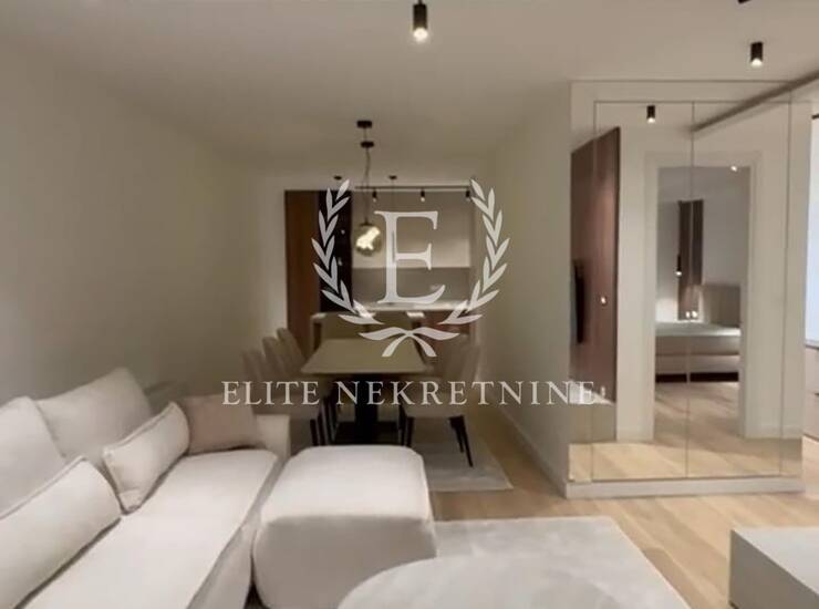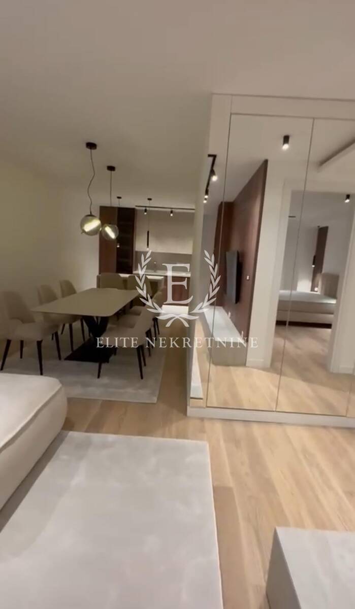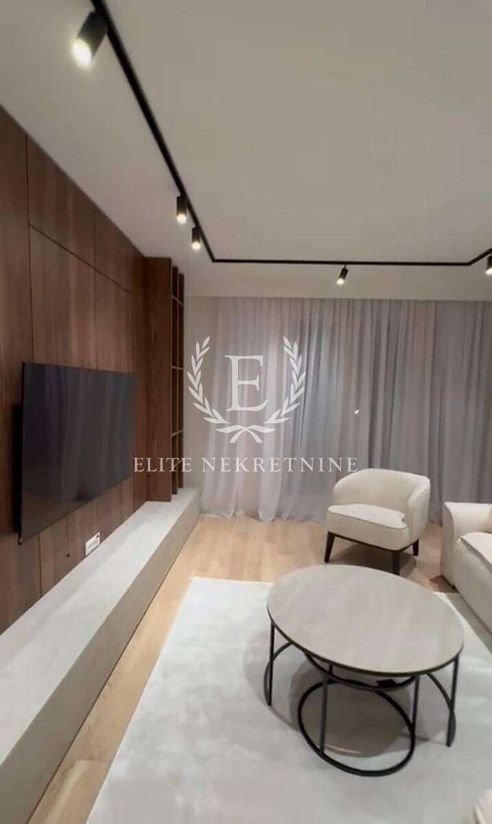 Enterijer je u potpunosti opremljen nameštajem i tehnikom vrhunskog kvaliteta, uz pažljivo odabrane materijale, tople drvene teksture i sofisticirano ambijentalno osvetljenje koje naglašava eleganciju i osećaj doma. Svaki detalj je promišljeno dizajniran kako bi prostor pružio maksimalan nivo udobnosti i estetike.