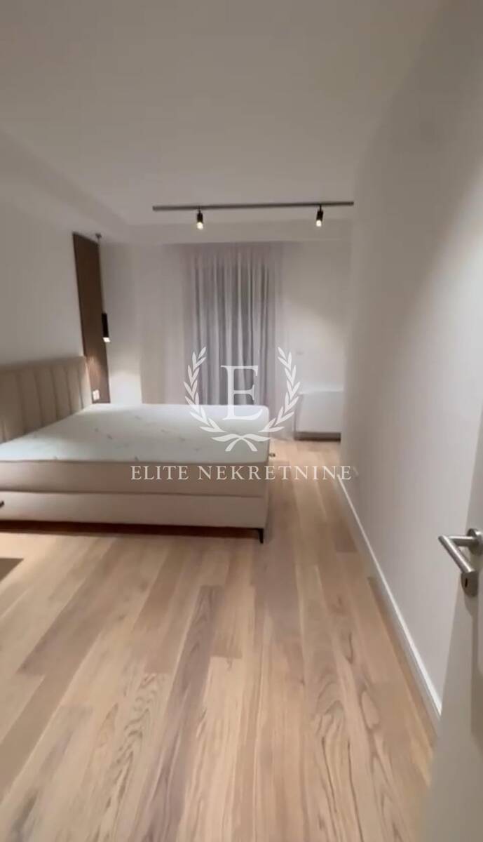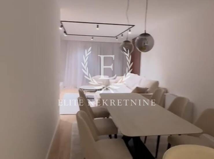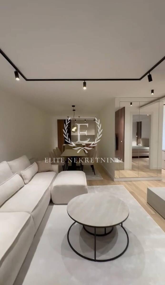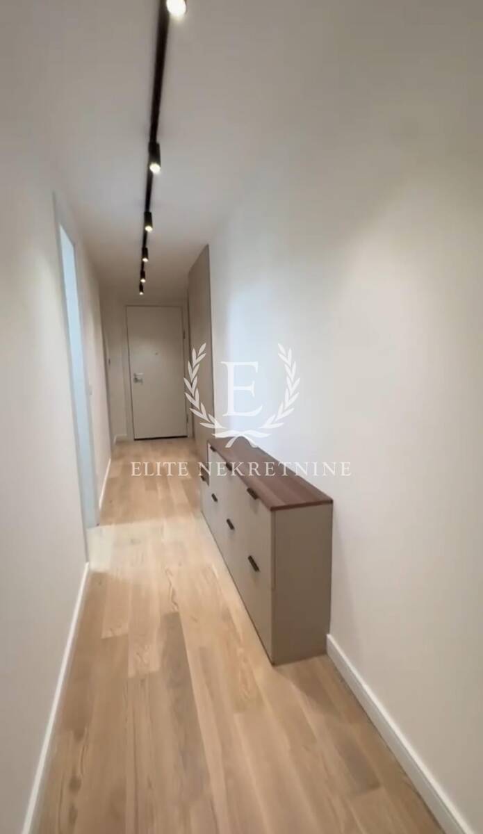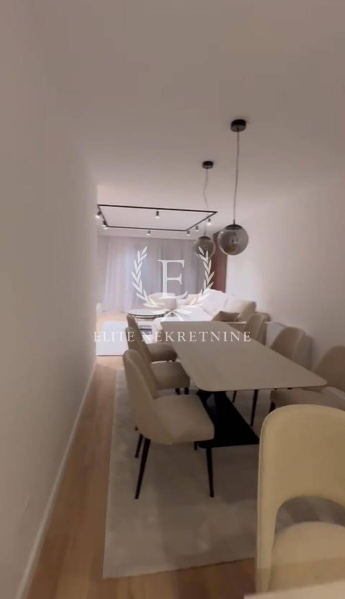 Stan se odlikuje izuzetnom prostornošću i obiljem prirodne svetlosti. Centralni deo čini elegantan dnevni boravak otvorenog koncepta, skladno povezan sa trpezarijom i savremeno dizajniranom kuhinjom, opremljenom aparatima najviše klase. Raspored obuhvata tri spavaće sobe, od kojih je jedna manjih dimenzija i idealna kao dečija soba, garderober ili radni prostor.