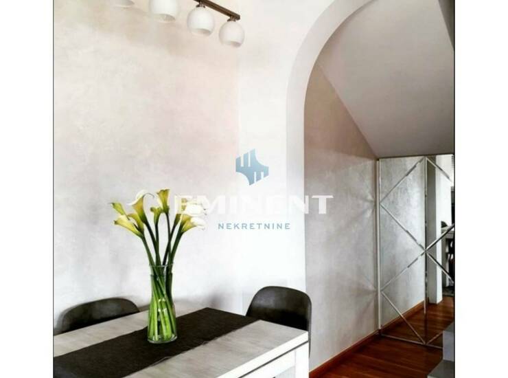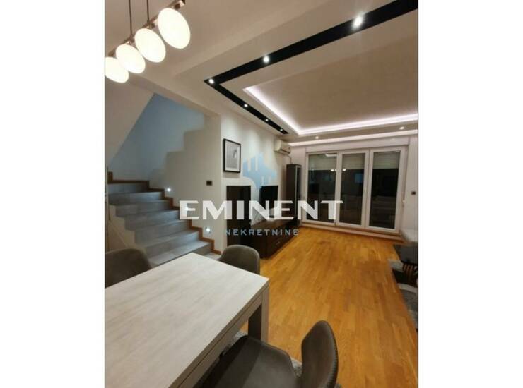 Dupleks je dvostrano orijentisan, svetao i sa oba nivoa ima pogled na ceo grad. Stan je podeljen na dva nivoa stepenicama od čvrstog materijala, sa prostranom pregrađenom ostavom koja je odvojena ogledalima i nalazi se ispod stepeništa. Drugi sprat poseduje punu visinu plafona bez kosina, tako da ne postoji utrošak u prostoru i utisak da je u pitanju dupleks već komforna kuća na sprat.