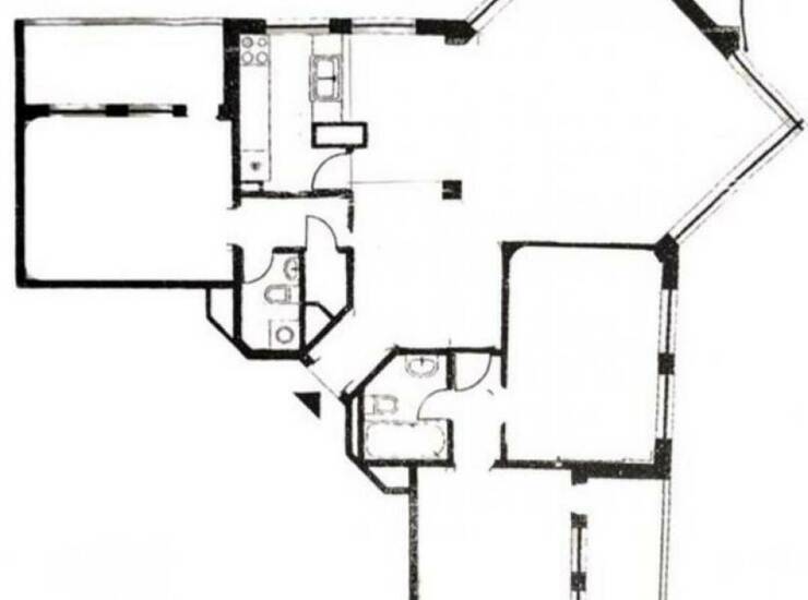 Prostorije: prostrani hodnik povezan sa centralnom prostorijom iz koje se ulazi u još tri velike sobe, dva kupatila, odvojena opremljena kuhinja, ostave i dve lođe na koje se izlazi iz soba.
