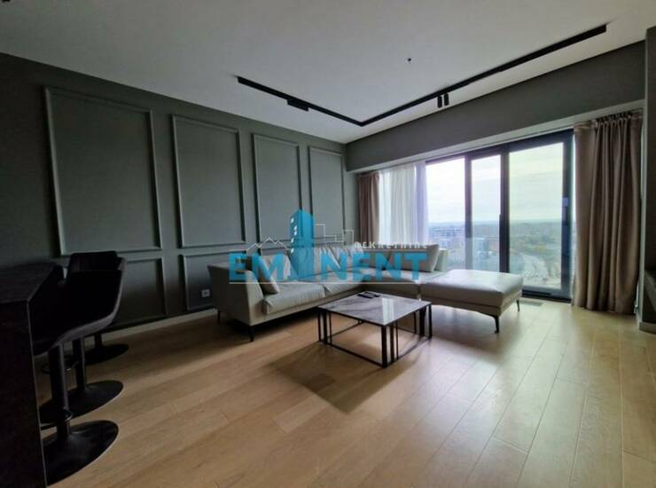 Stan je opremljen veoma kvalitetnim nameštajem i tehnikom, komforan je, poseduje dve spavaće sobe, od kojih je jedna soba master sa kupatilom, dodatno kupatilo, toalet i vešeraj. Zahvaljujući velikim staklenim površinama, obezbeđeno je puno dnevne sunčeve svetlosti, kao i prelep pogled. Grejanje je centralno, uz mogućnost kontrole utroška uz pomoć kalorimetara. U cenu je uračunato i garažno mesto. Stan je za svaku preporuku.