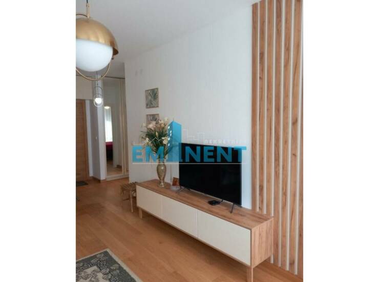 U ponudi je luksuzno sređen dvosoban stan, komforan, svetao zahvaljujući velikim staklenim površinama, kompletno opremljen, poseduje odvojenu spavaću sobu. Postoji mogućnost zakupa garažnog mesta, po dogovoru.