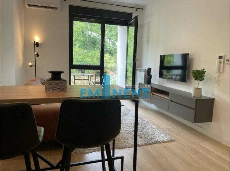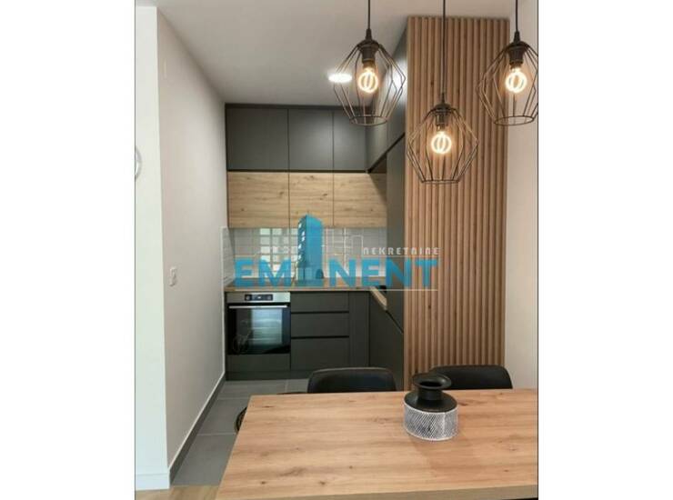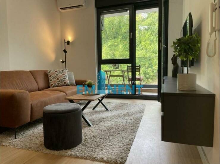 Jako lepo sređen stan, u novoj zgradi New Minel-a, potpuno opremljen, moderan, odvojena spavaća soba, cg po utrošku, video nadzor, veliko garažno mesto pogodno za parkiranje dva manj automobila uz doplatu 100 eur.