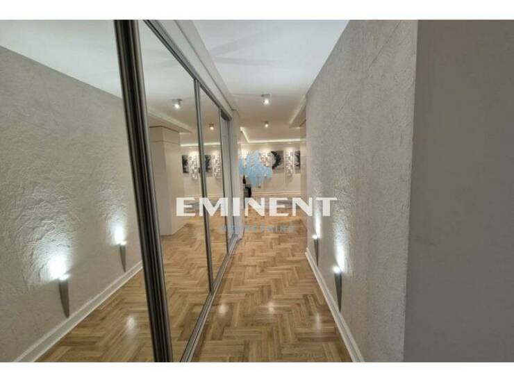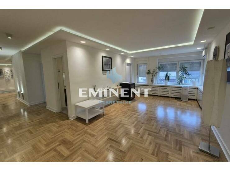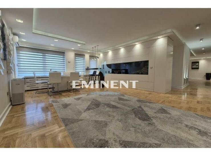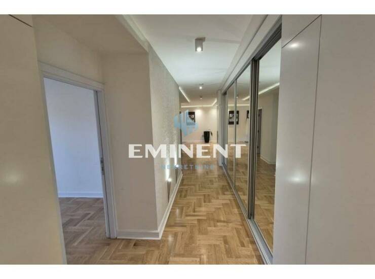 Veoma komforan, luskuzno sređen stan, potpuno renoviran, izuzetno kvalitetan. Čine ga dnevni boravak, trpezarija, kuhinja, četiri spavaće sobe, dva kupatila i dve terase. Pogodan je kako kao stambeni, tako i kao poslovni prostor. U cenu zakupa je uračunato i garažno mesto.
