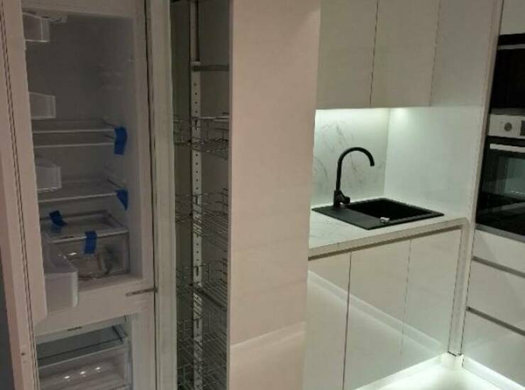 Poseduje ugradnu kuhinju sa kompletnom belom tehnikom - frižider sa zamrzivačem i sudomašina.